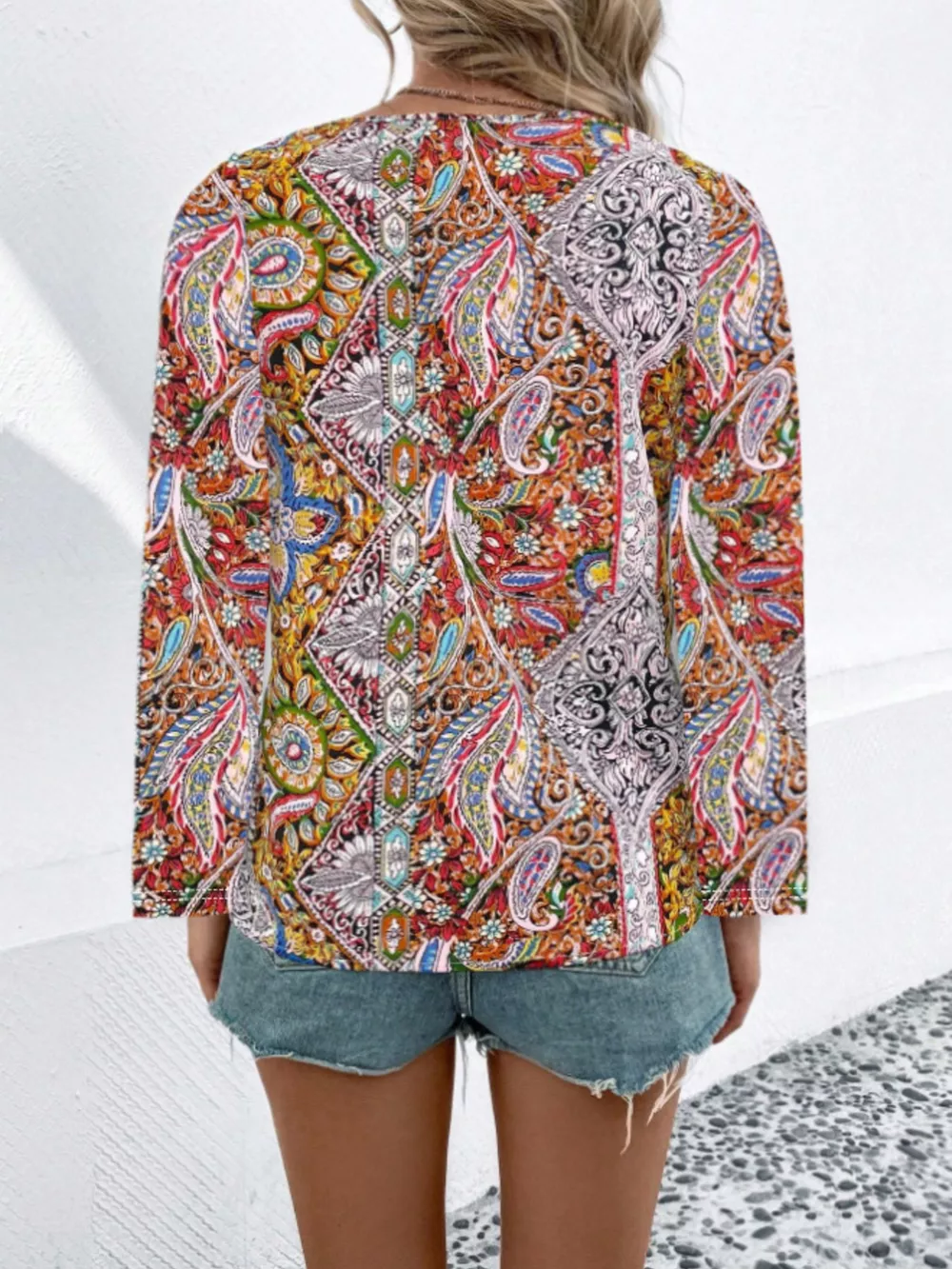 Paisley Print Long Sleeve Blouse