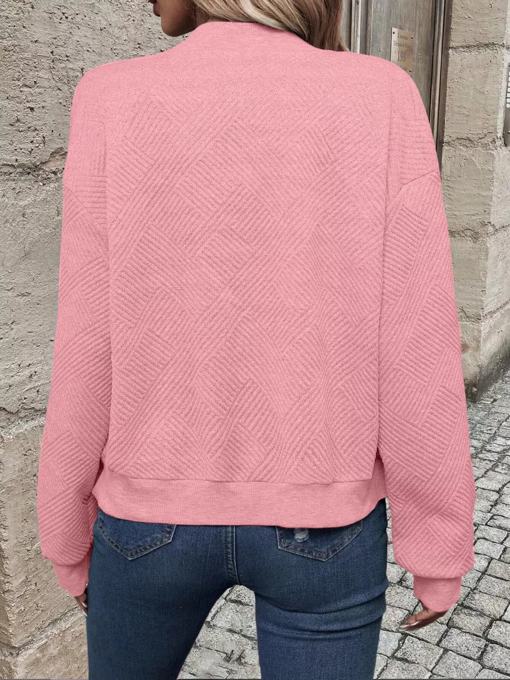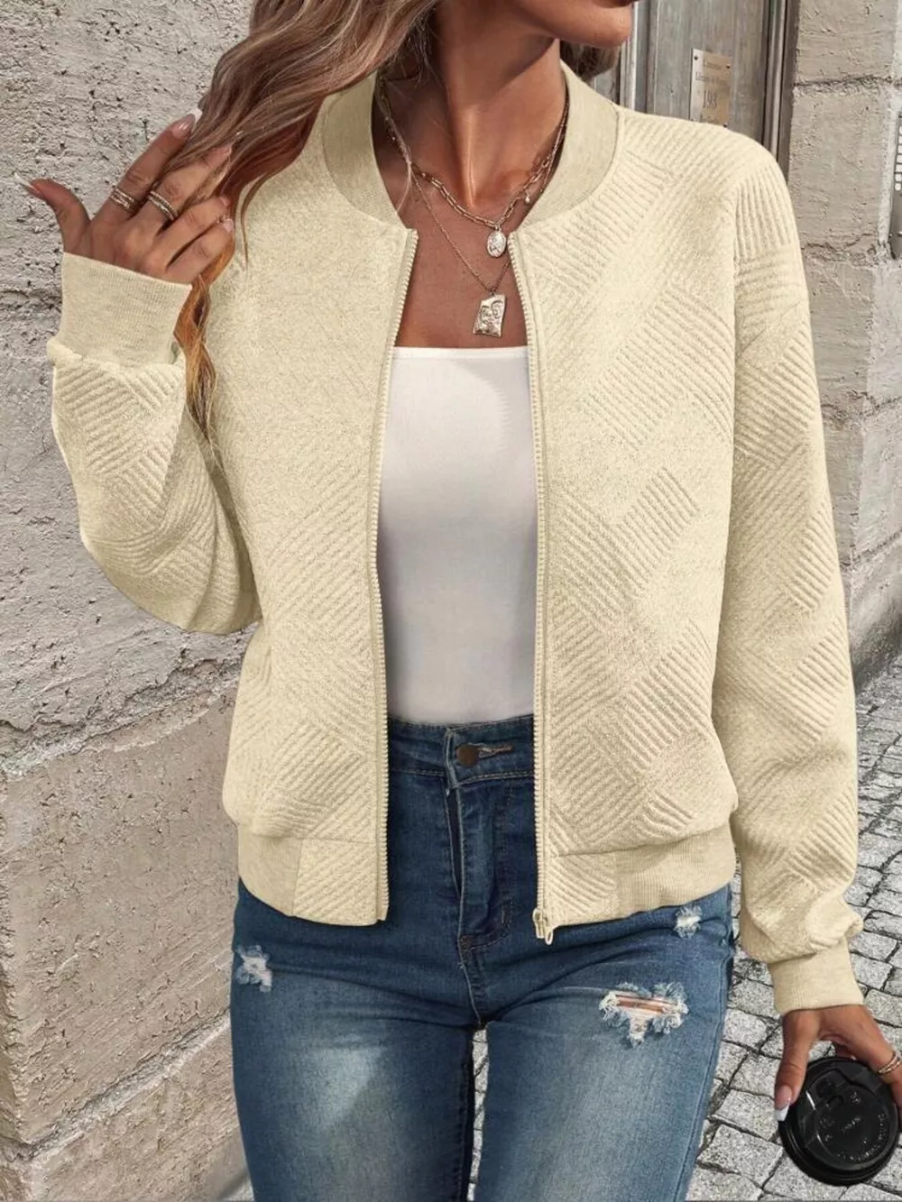 Full Size Zip Up Long Sleeve Textured Jacket Plus Size