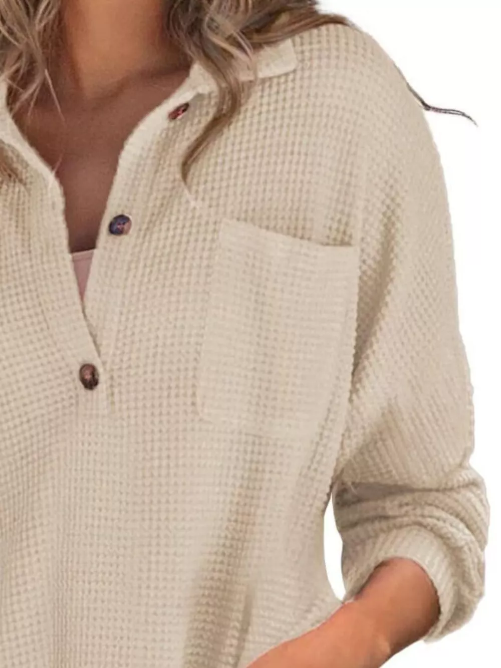 Casual Waffle Knit Button Detail Blouse