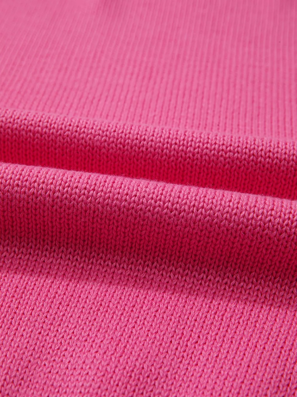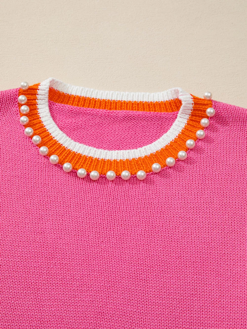 Contrast Crew Neck Pearled Decor Drop Shoulder Knit Sweater