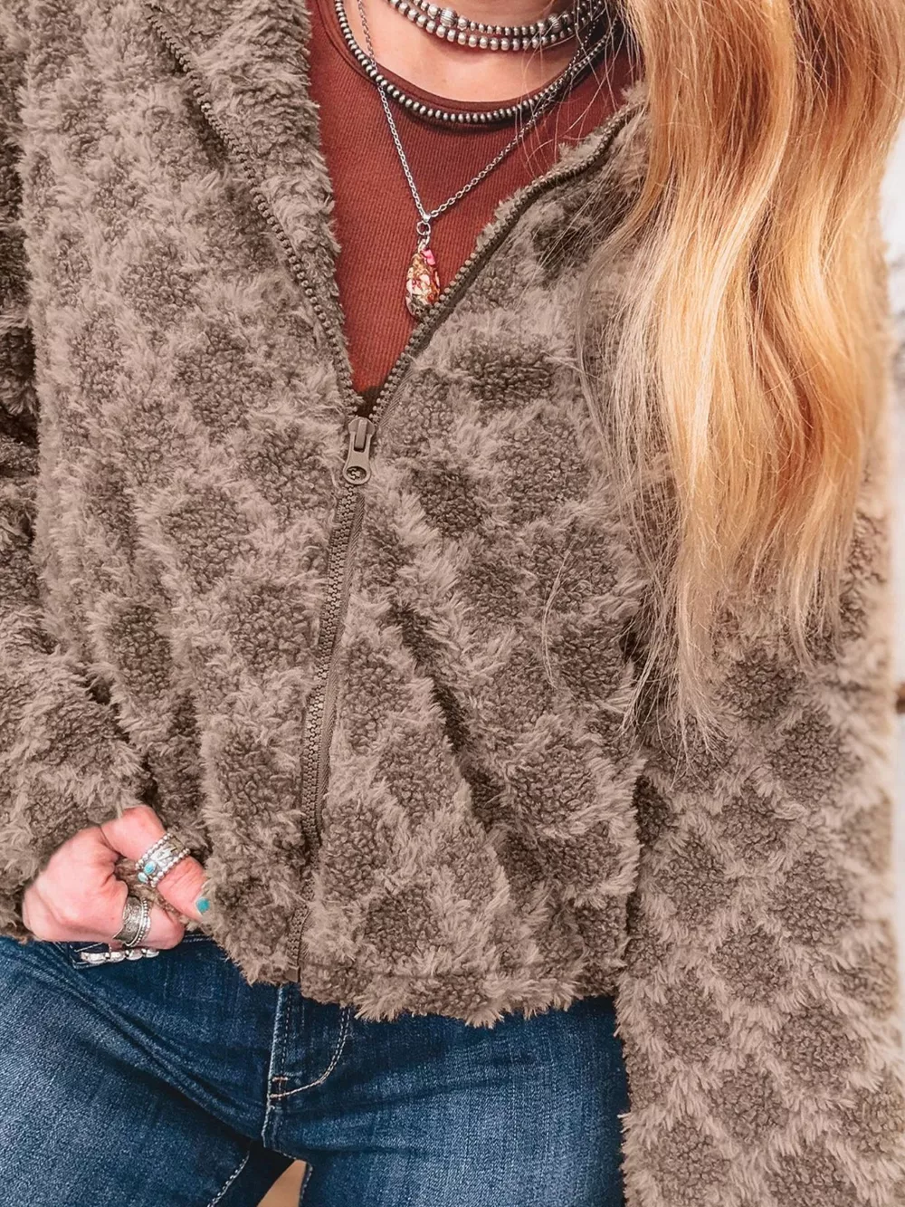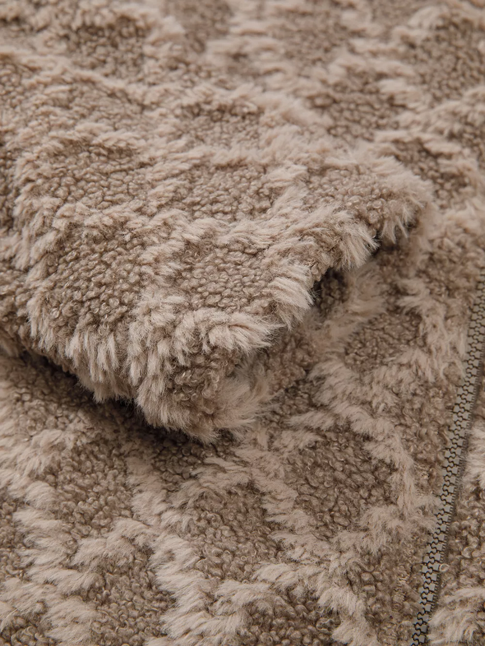 Sherpa Rhombus Zip Up Side Pocket Hooded Jacket