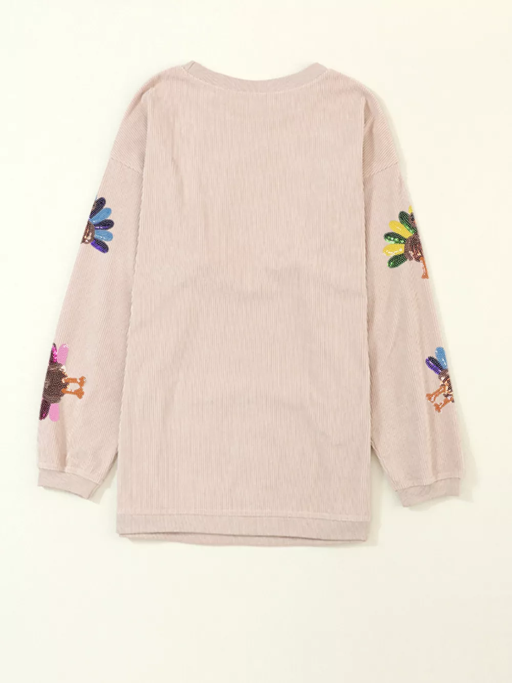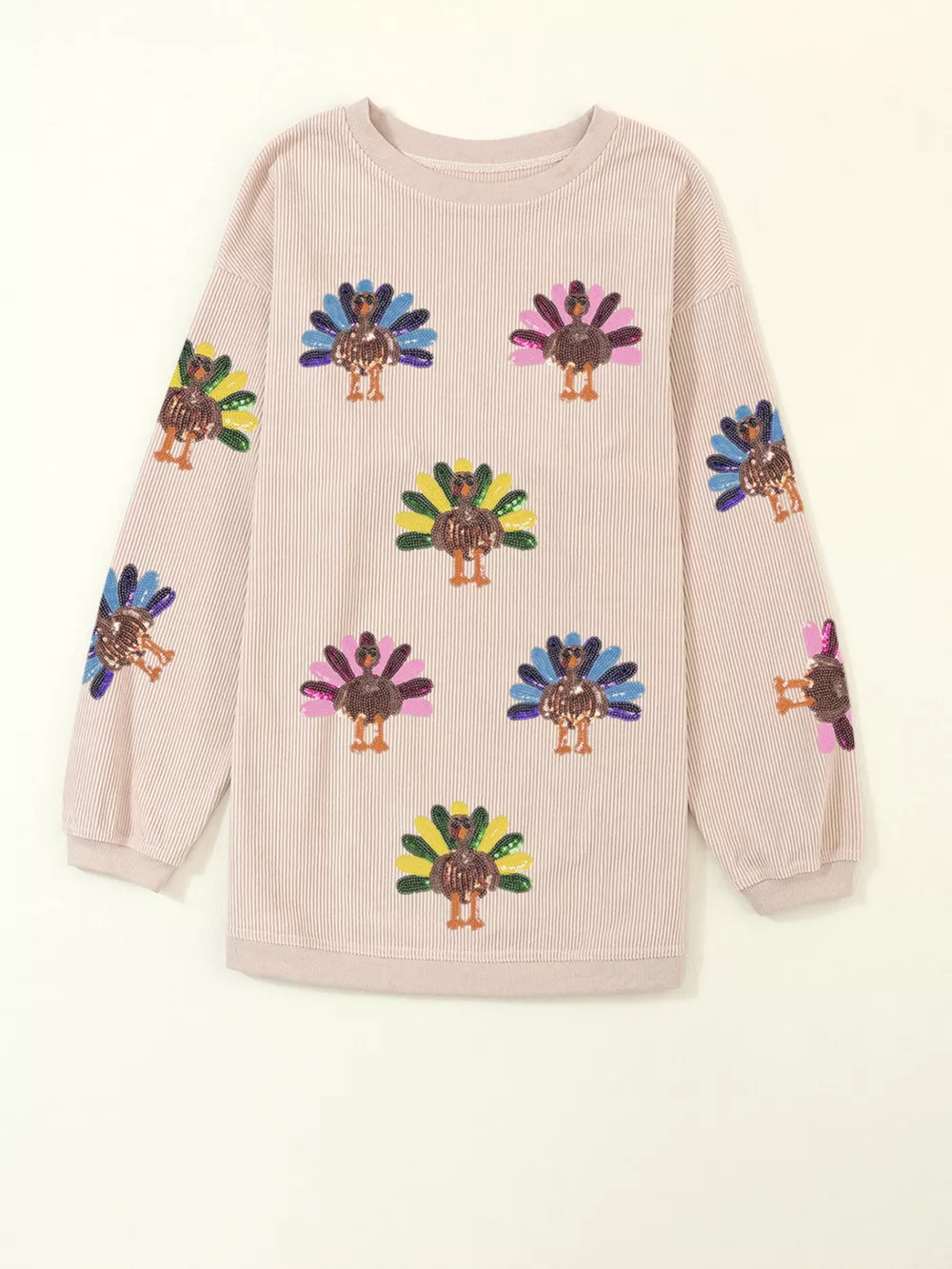 Full Size Turkey Graphic Corded Baggy Sweatshirt Plus Size