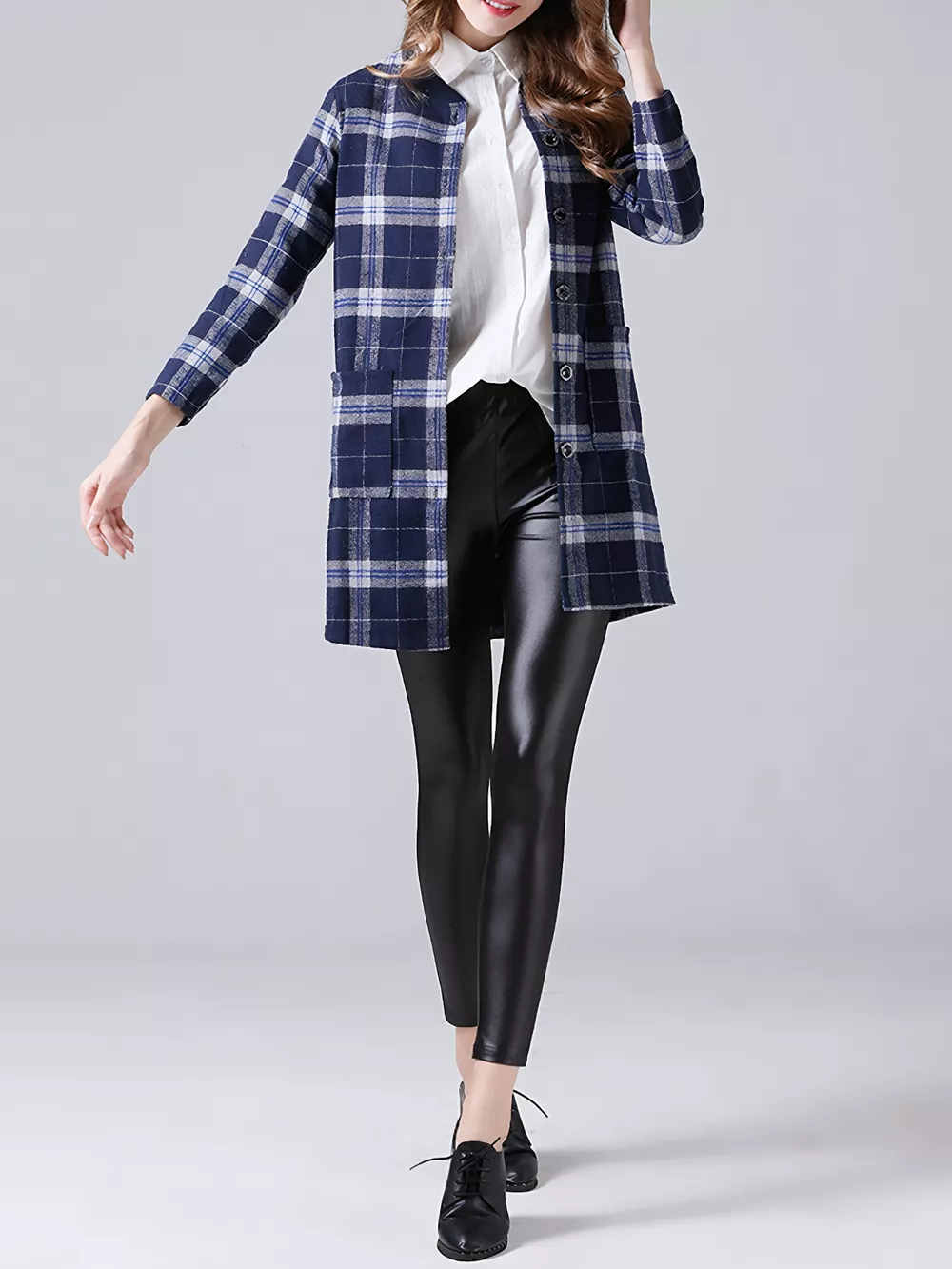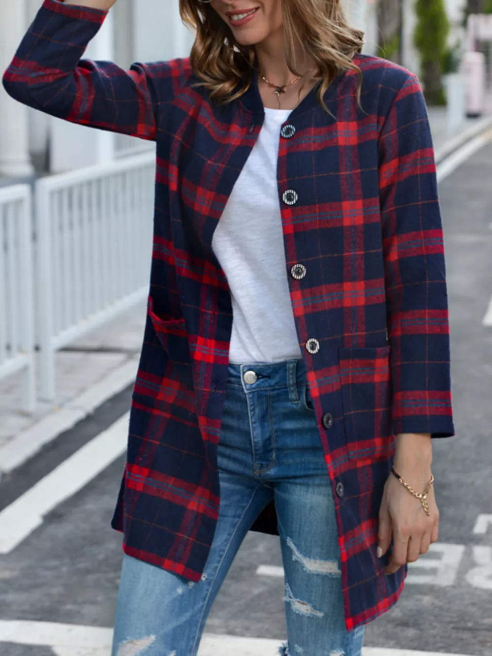 Plus Size Plaid Button-Down Longline Shirt