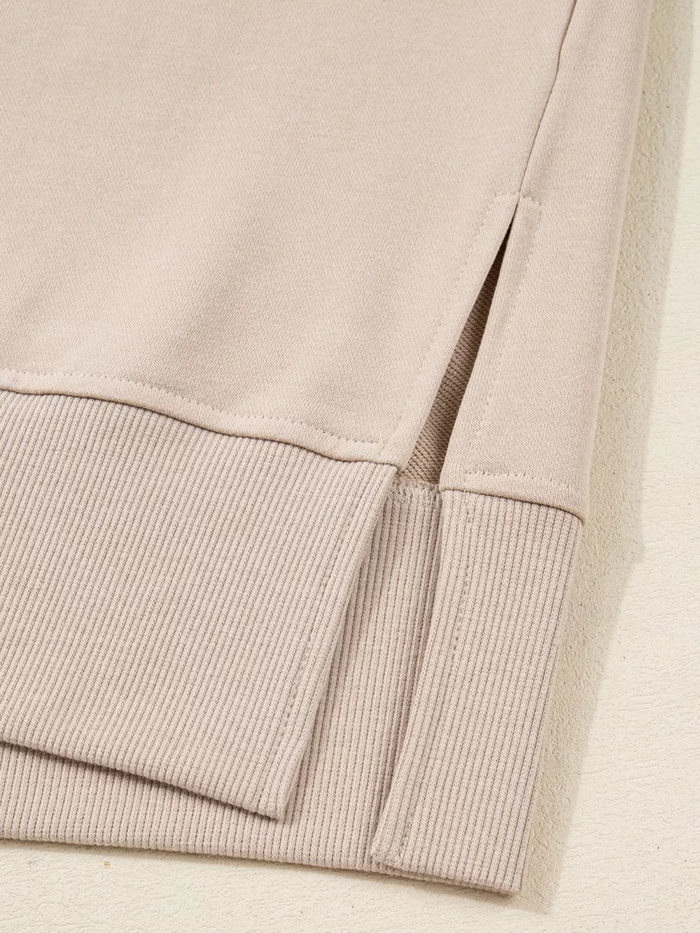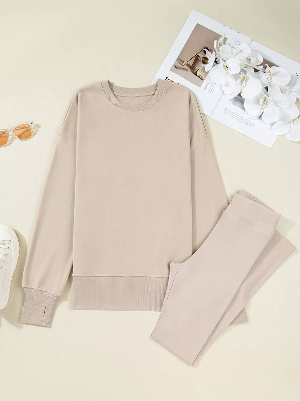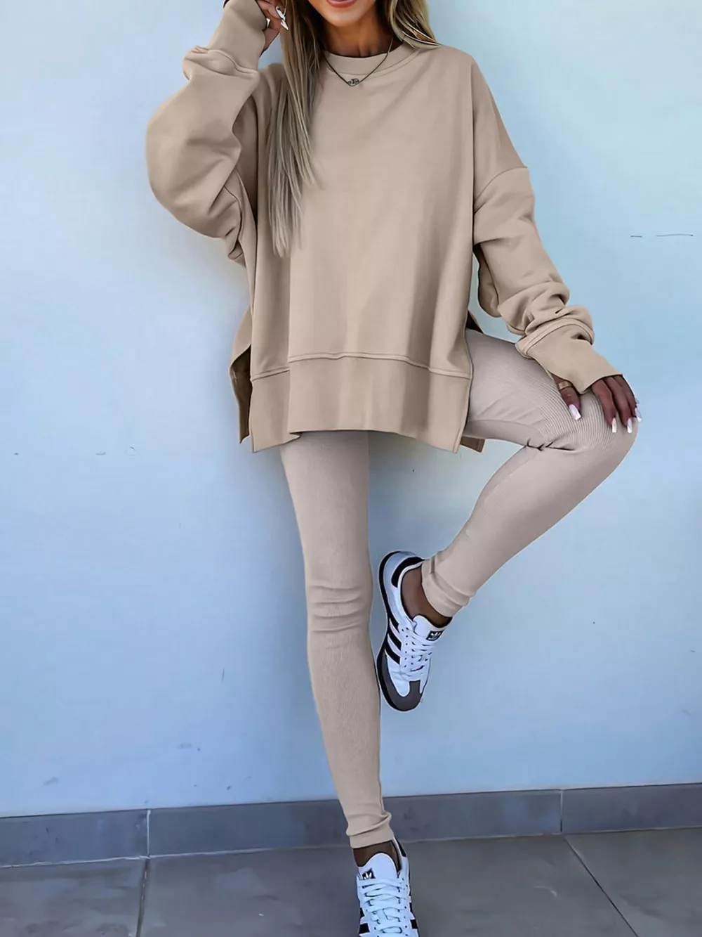 Solid Color Oversize Slit Sweatshirt and Ribbed Leggings 2pcs Set