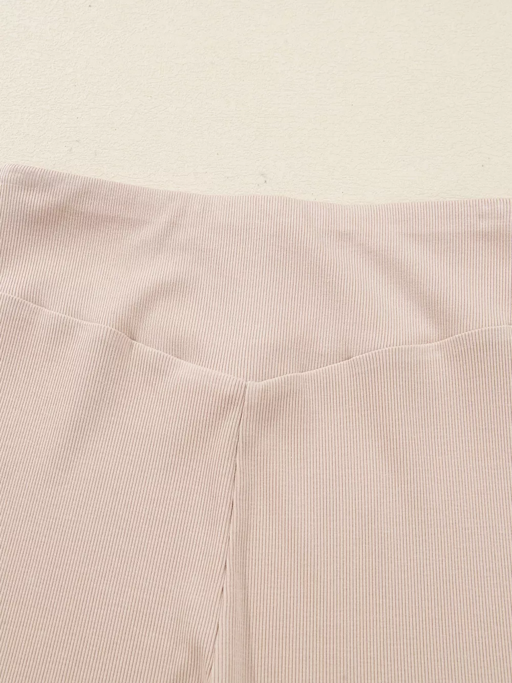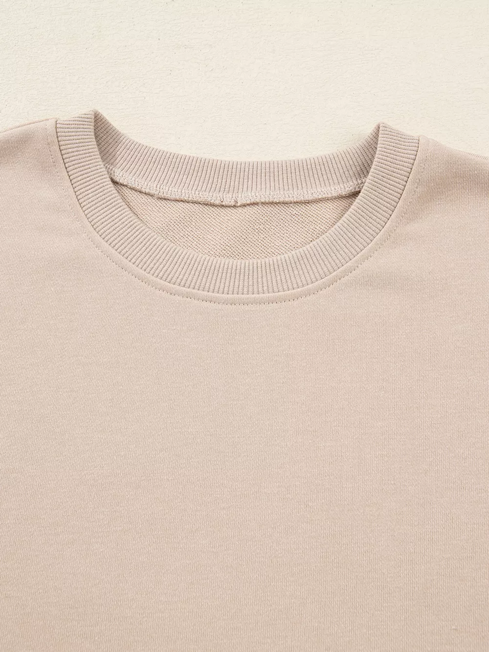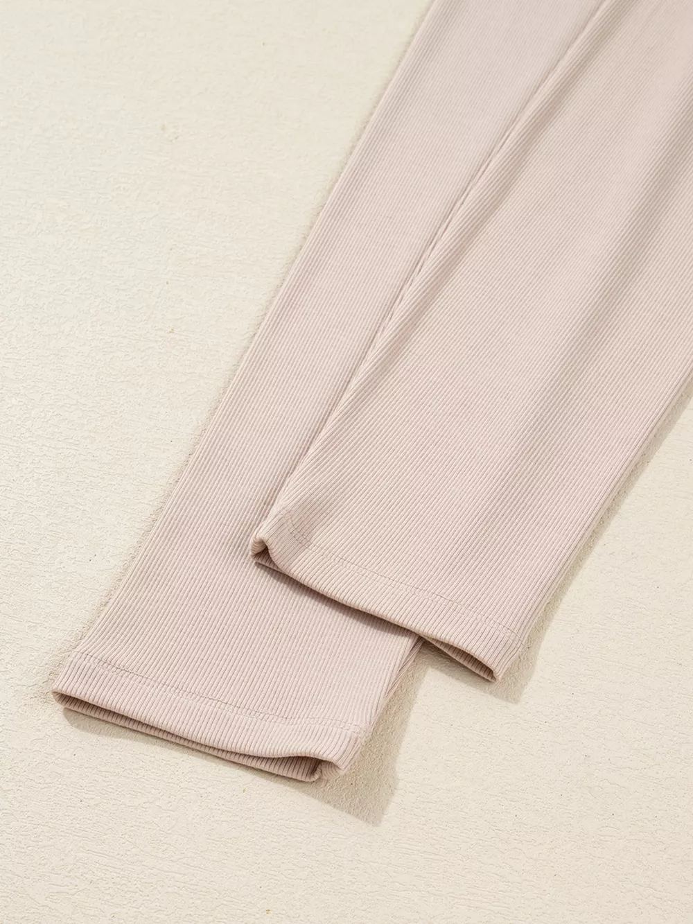 Solid Color Oversize Slit Sweatshirt and Ribbed Leggings 2pcs Set