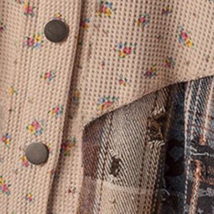 Boho Floral Plaid Patchwork Distressed Detail Ruffled Sleeve Waffle Knit Shacket