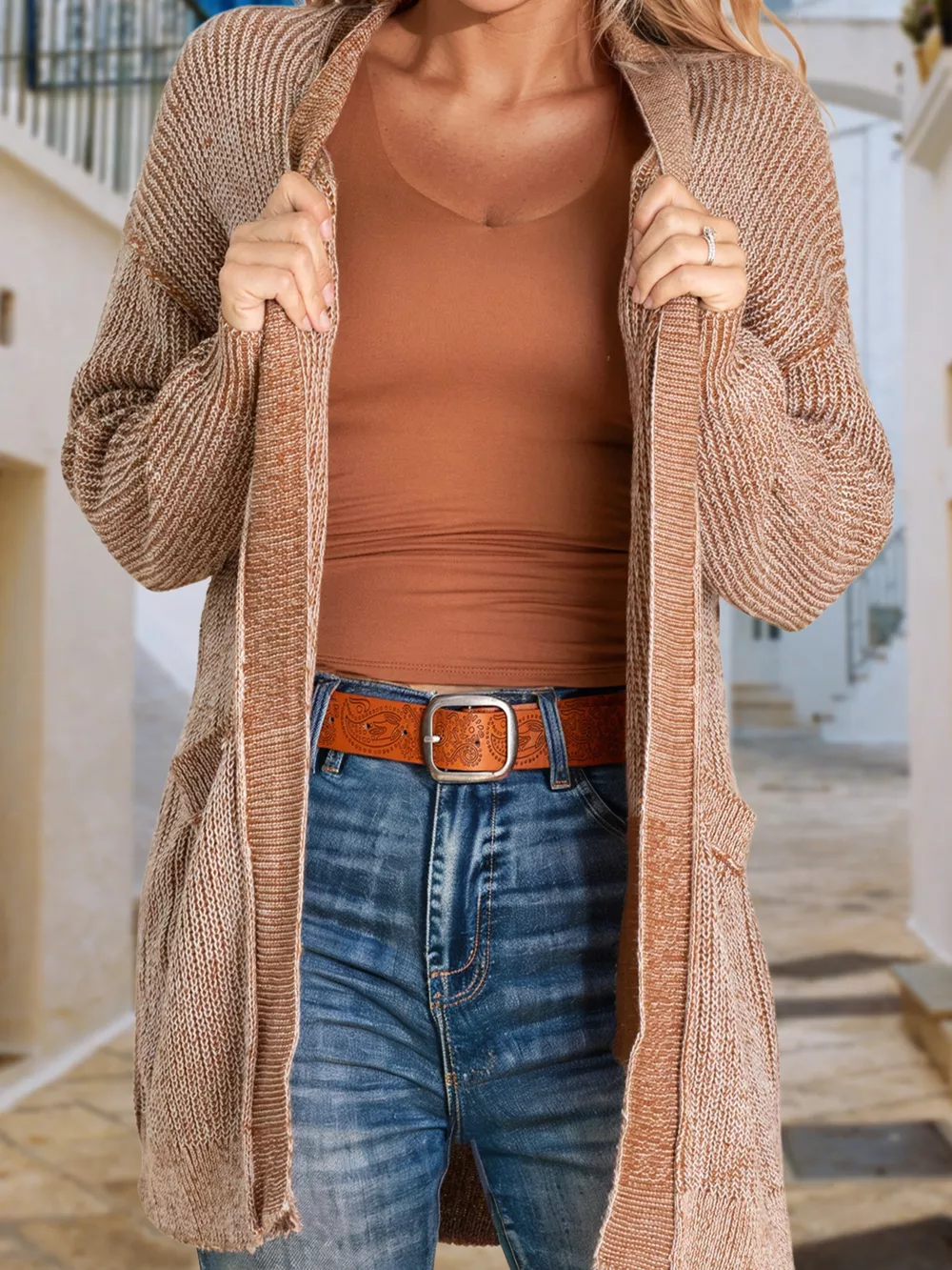 Open Front Dropped Shoulder Cardigan with Pockets