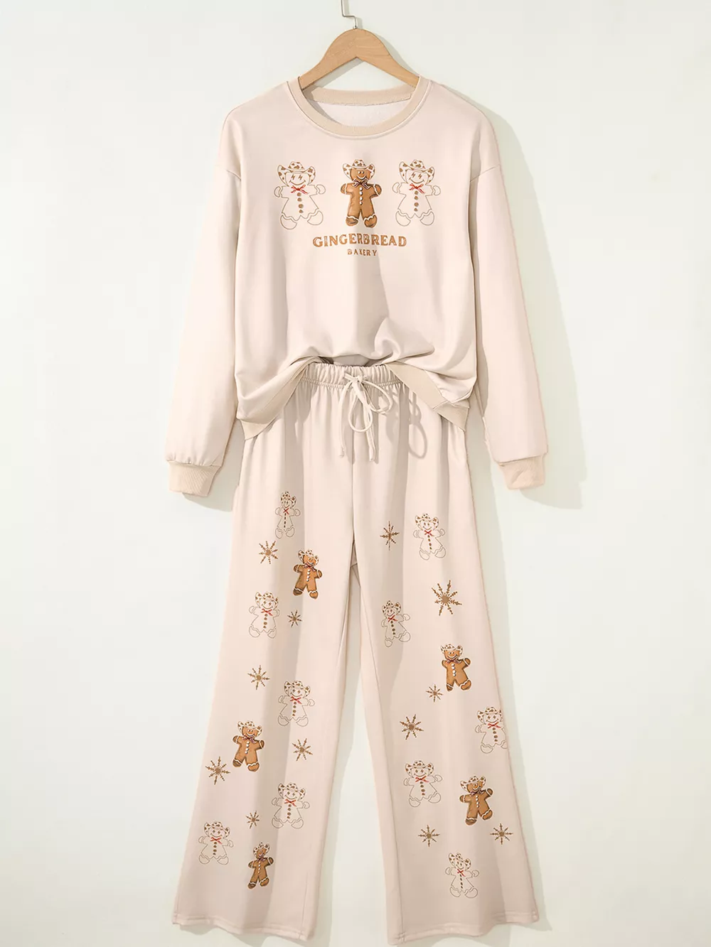 GINGERBREAD BAKERY Christmas Long Sleeve Top and Pants 2pcs Set