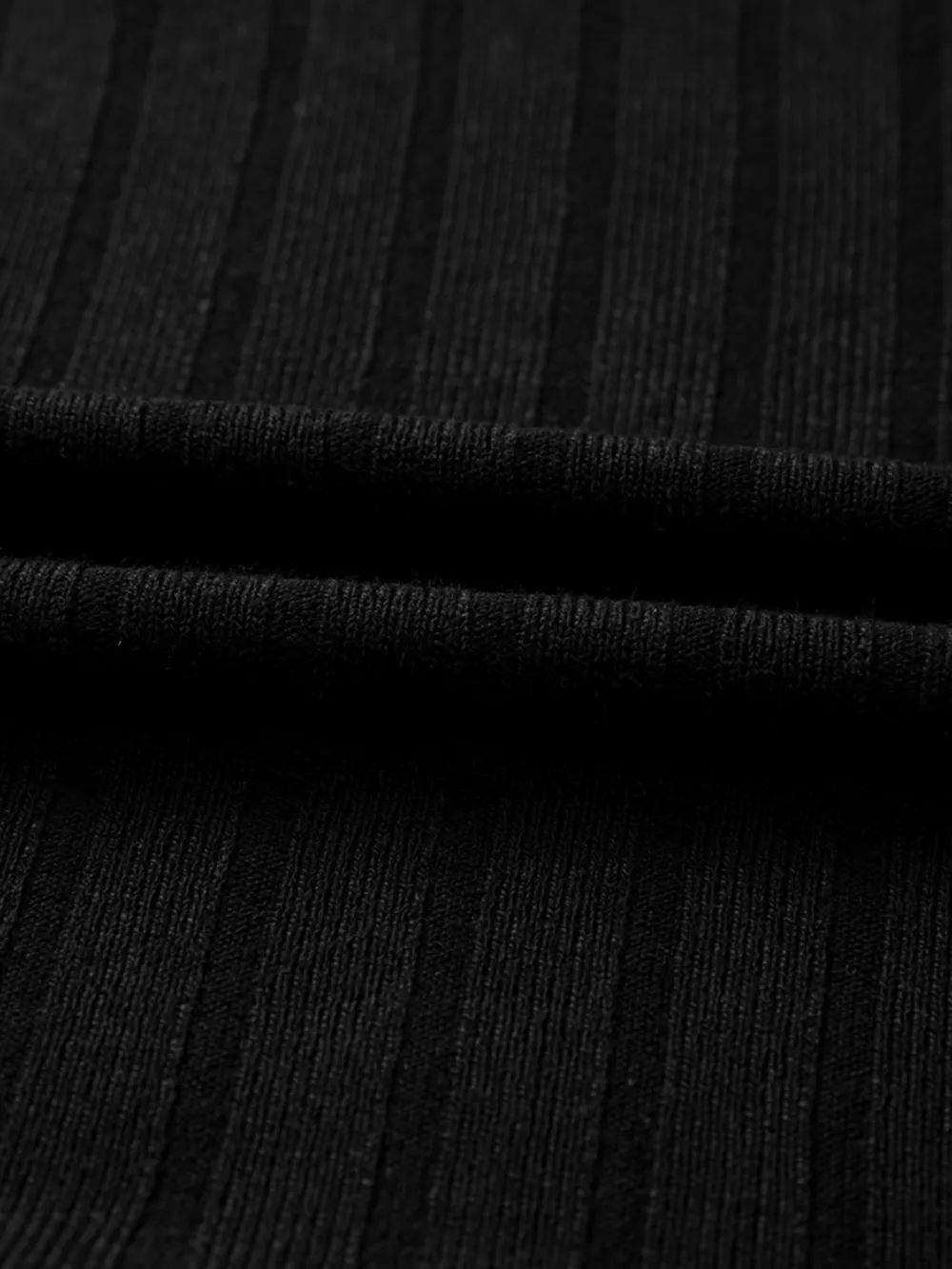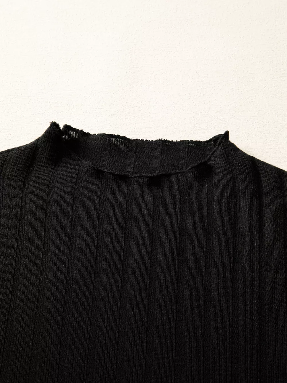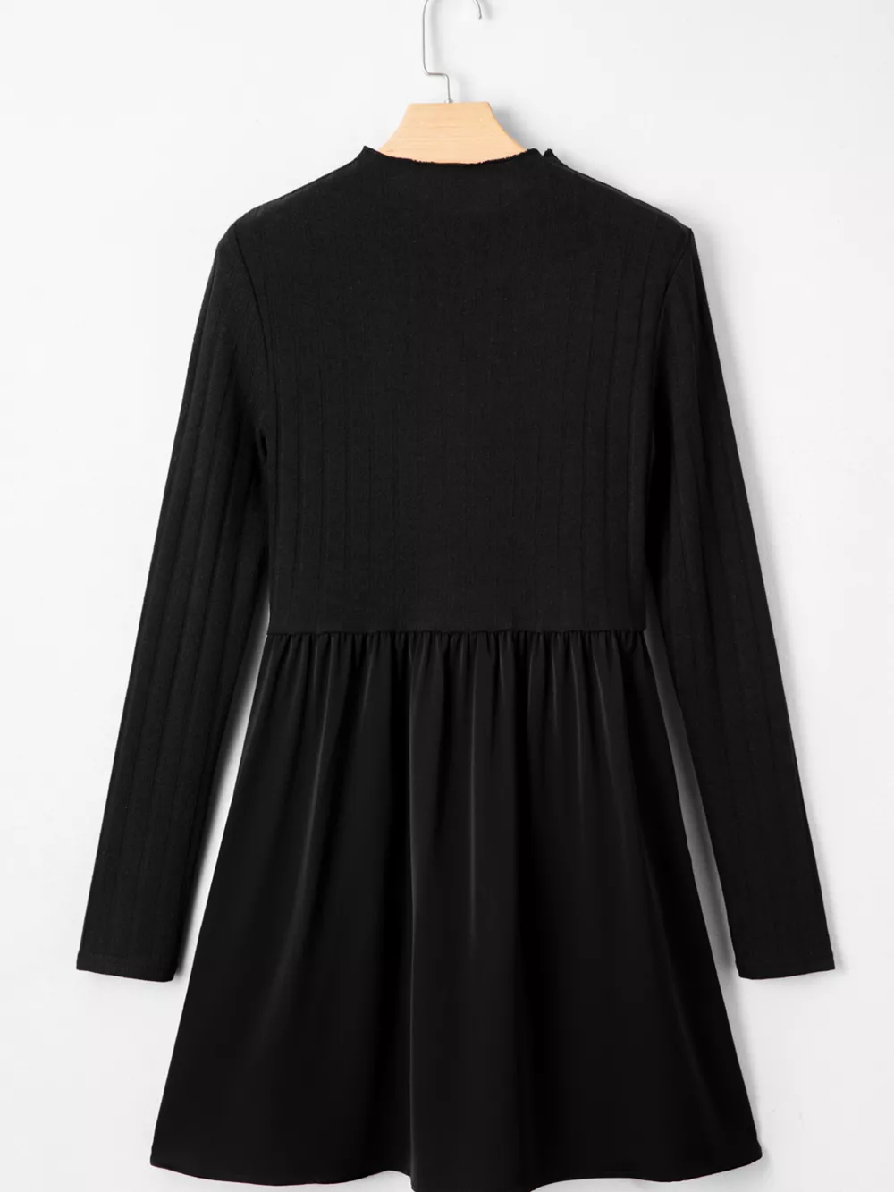 Frilled Neck Ribbed Knit Patchwork Long Sleeve Mini Dress