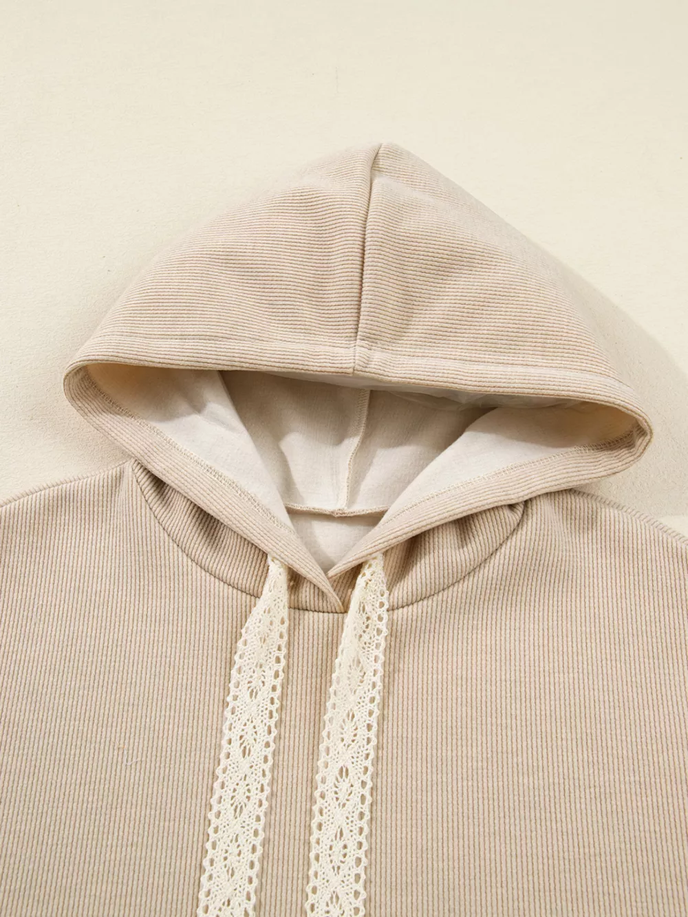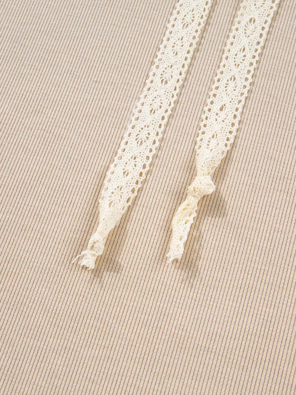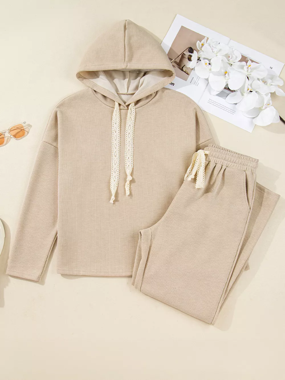 Lace Drawstring Hoodie and High Waist Pants Corduroy Suit