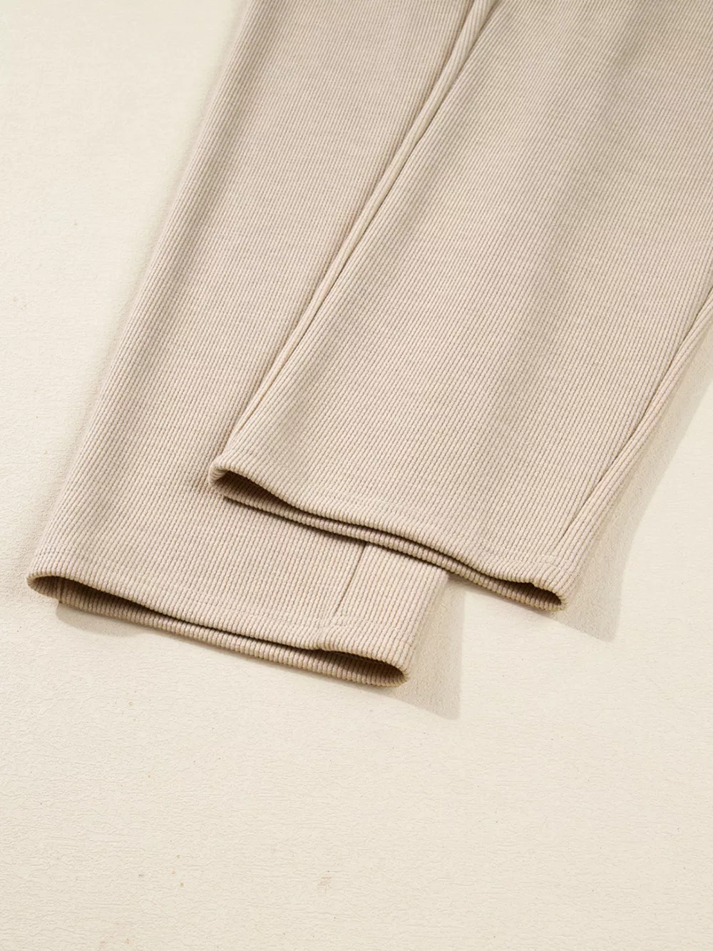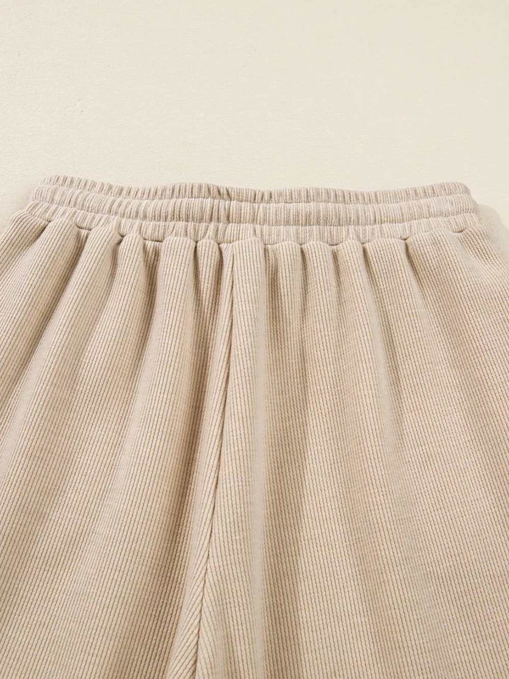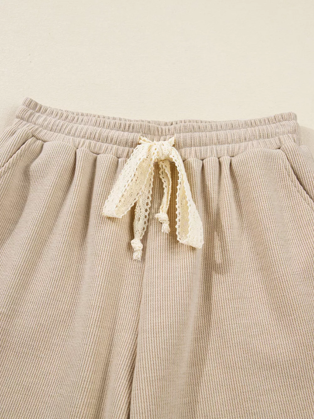 Lace Drawstring Hoodie and High Waist Pants Corduroy Suit