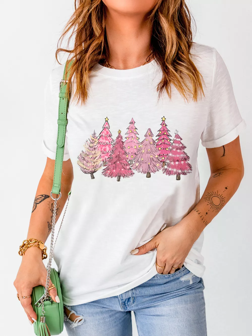 Full Size Lighting Christmas Trees Graphic Tee Plus Size