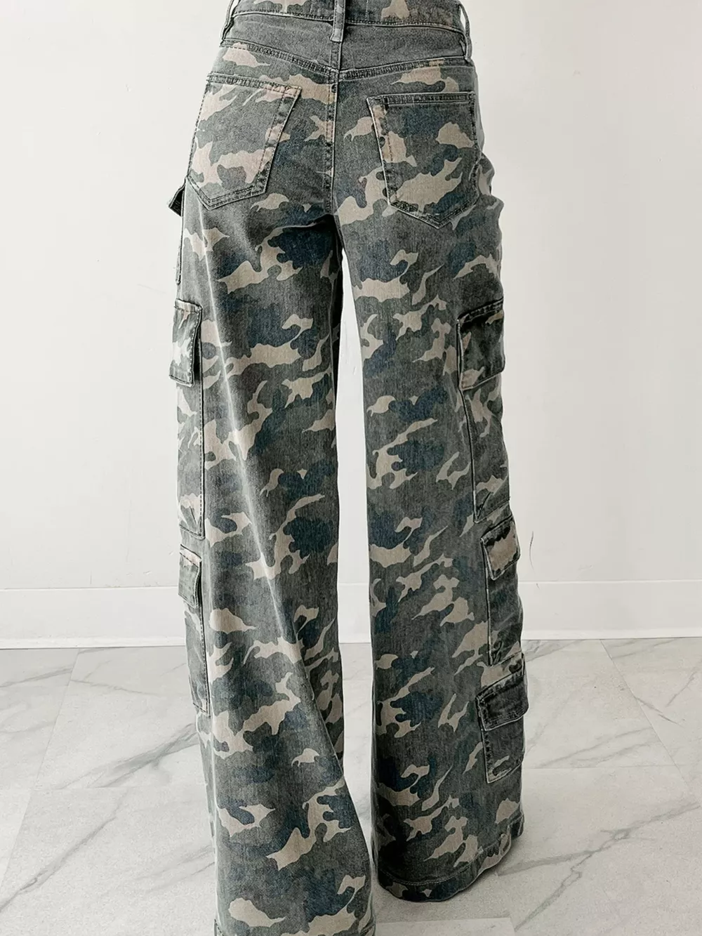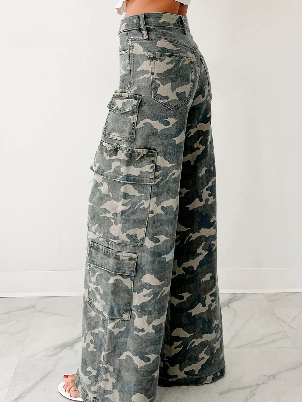 Camo Print Wide Leg Cargo Jeans