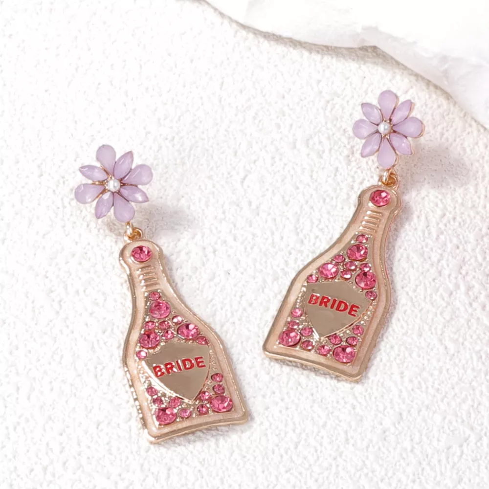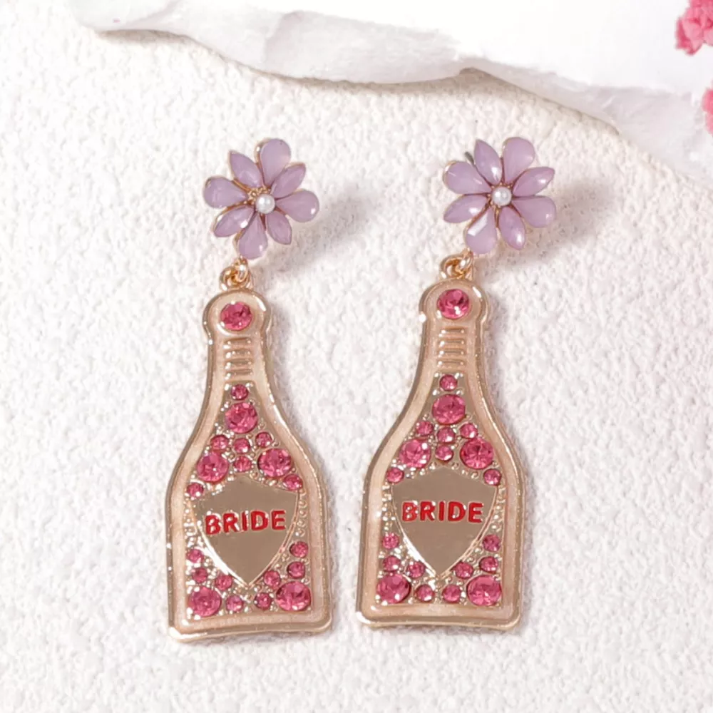 Bride Champagne Bottle Dangle Earrings