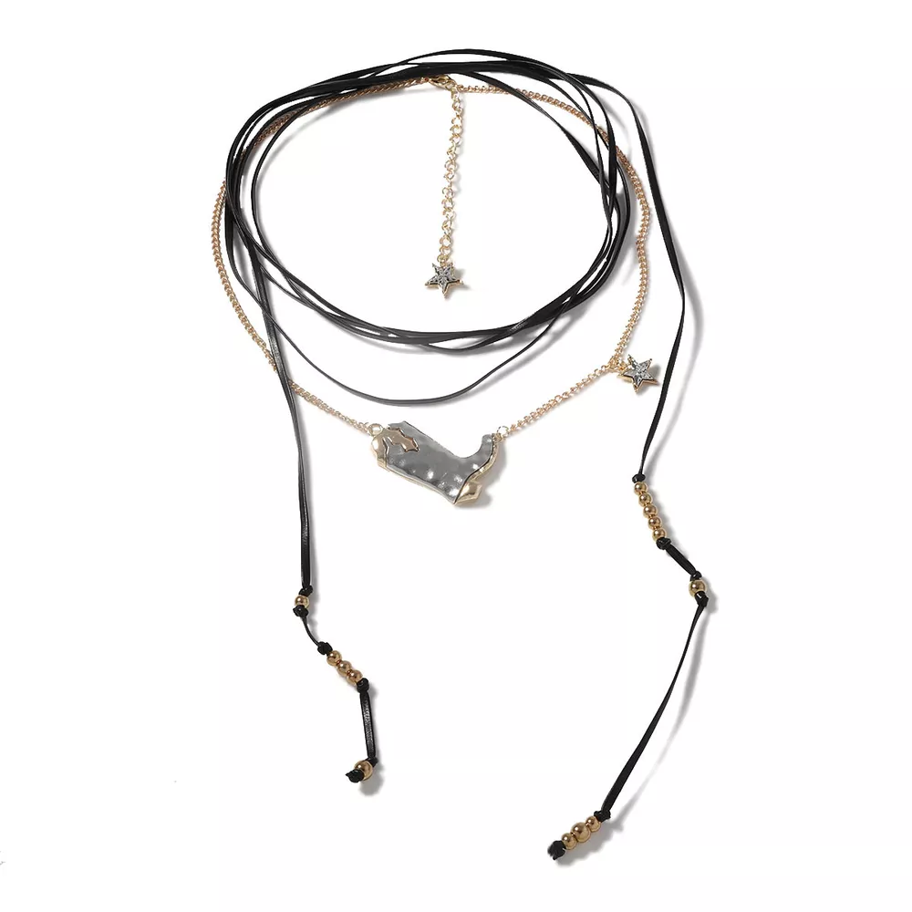 2 Piece Layered Leather Cord Boot Pendant Necklace