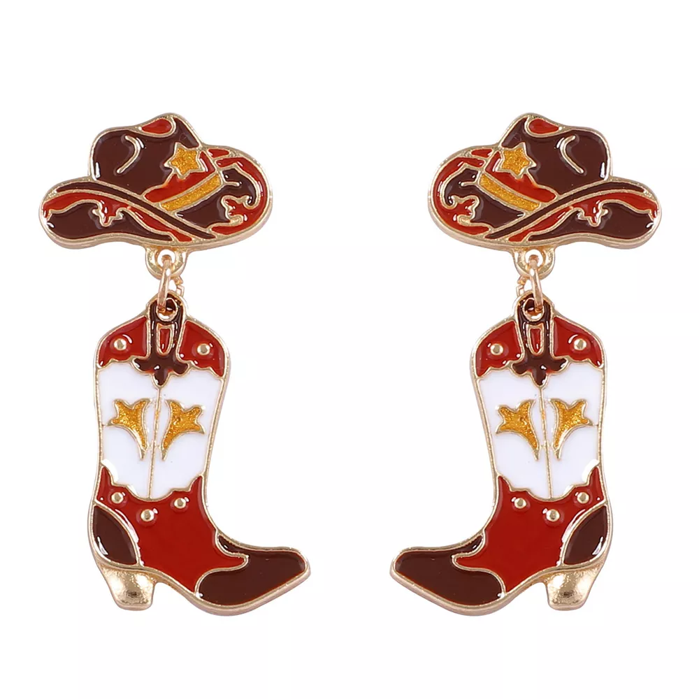 18K Gold-Plated Cowboy Hat Boots Dangle Earrings