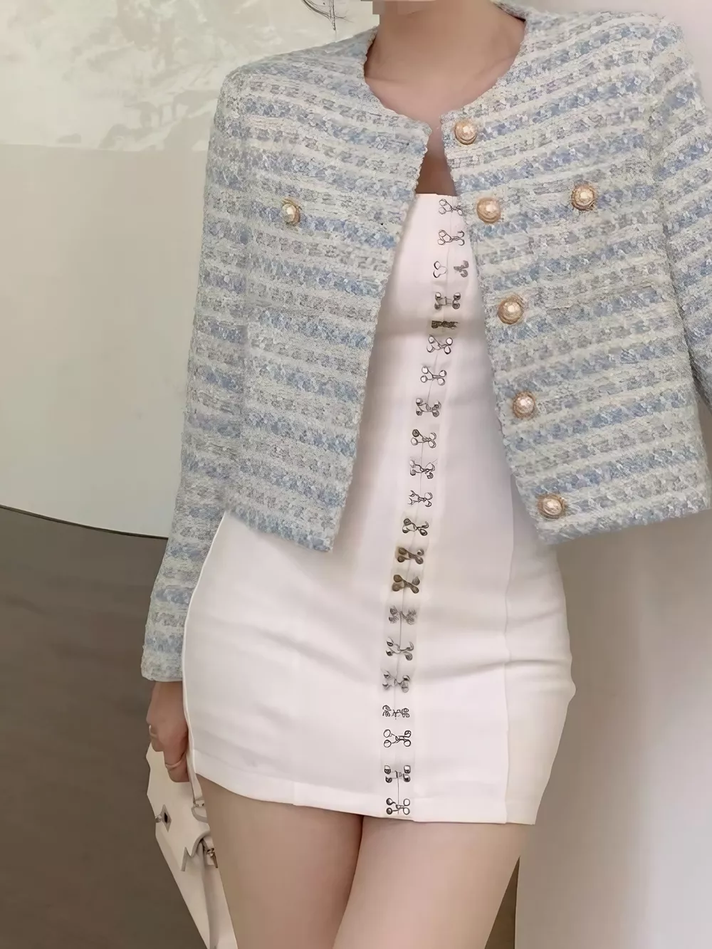 Button Up Cropped Tweed Outerwear