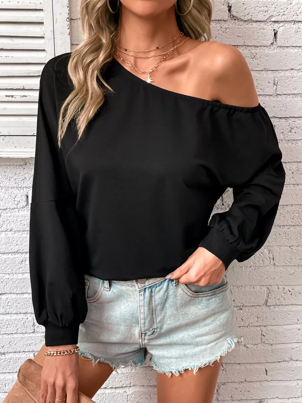 One-Shoulder Long Sleeve Casual Sweatshirt