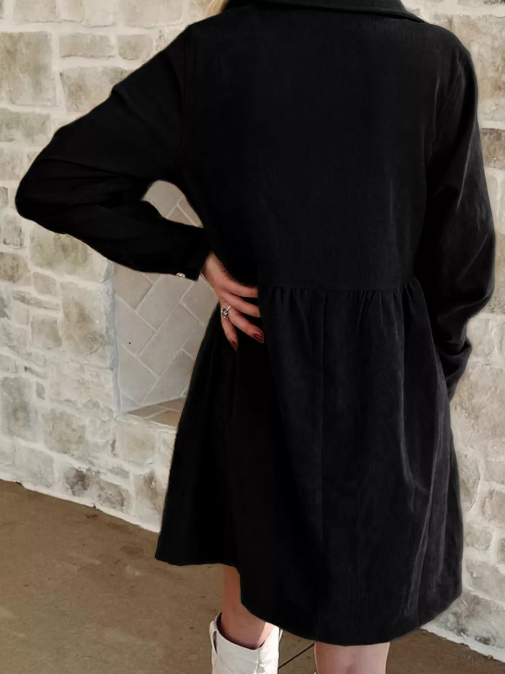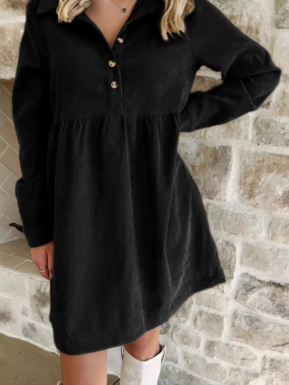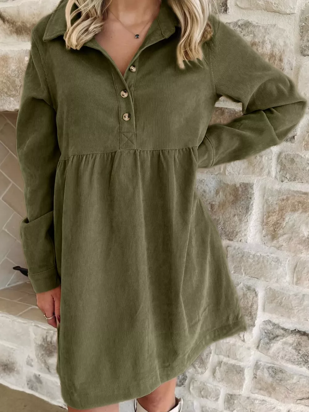 Casual Corduroy Button Detail Mini Dress