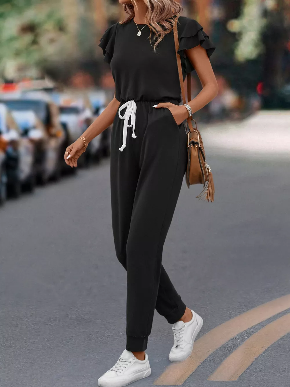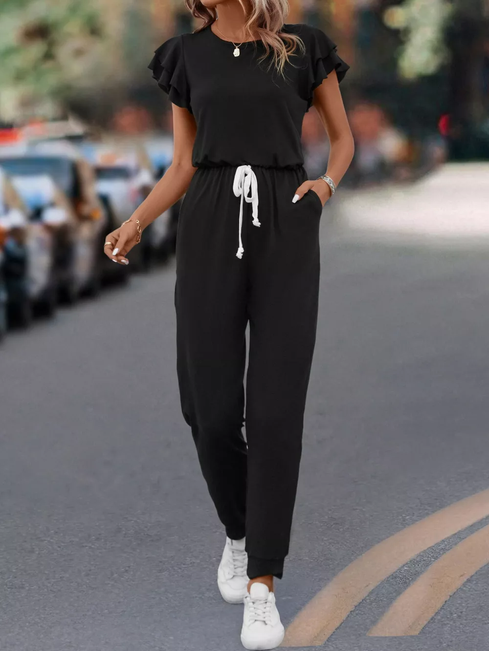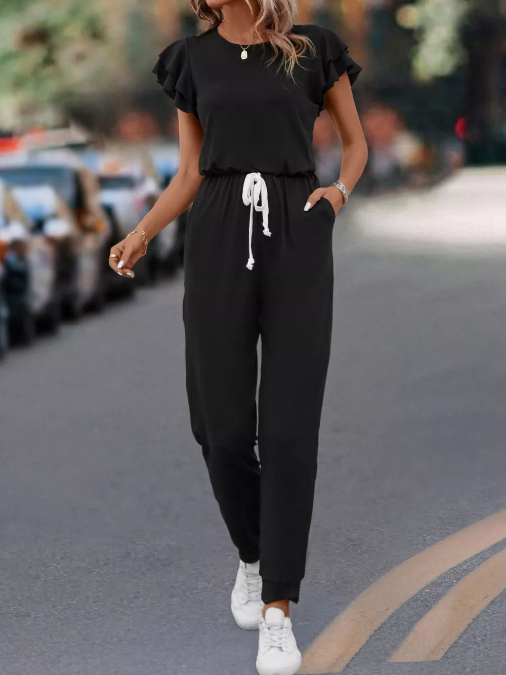 Ruffle Sleeve Drawstring Waist Casual Jumpsuit