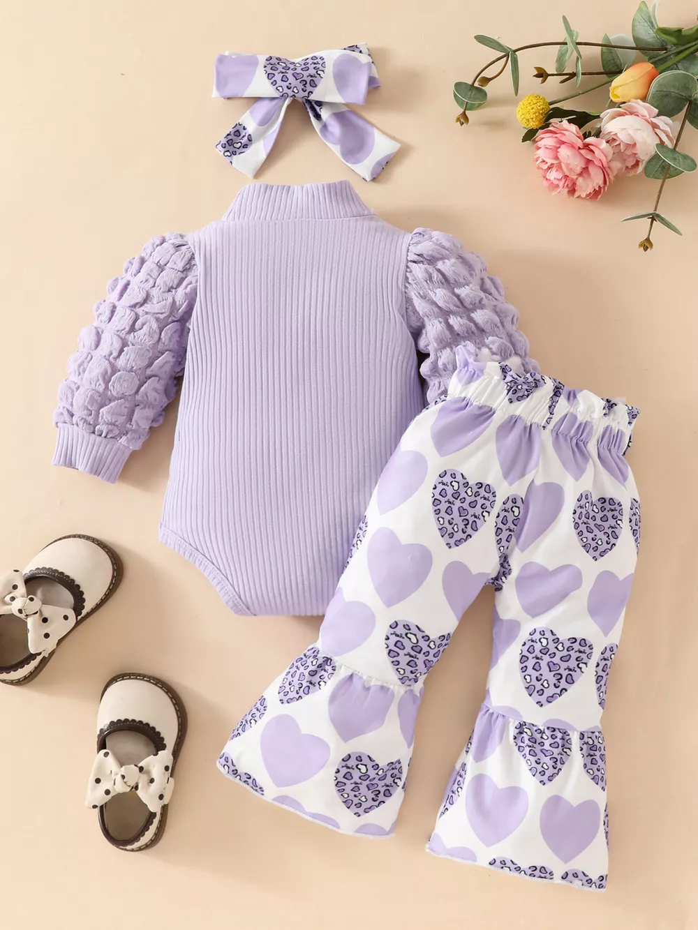 Children's Bubble Texture Long Sleeve Top and Pants Set with Headband