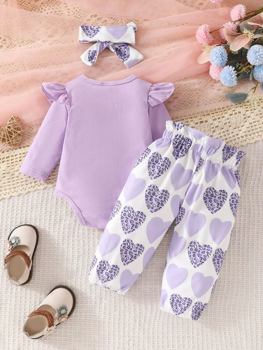 Children's Graphic Ruffled Top and Pants Set with Headband