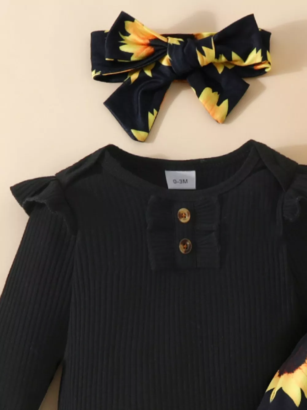 Children's Ruffled Ribbed Top and Sunflower Pants Set