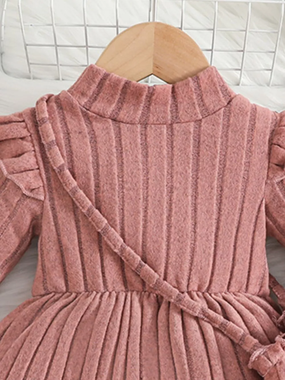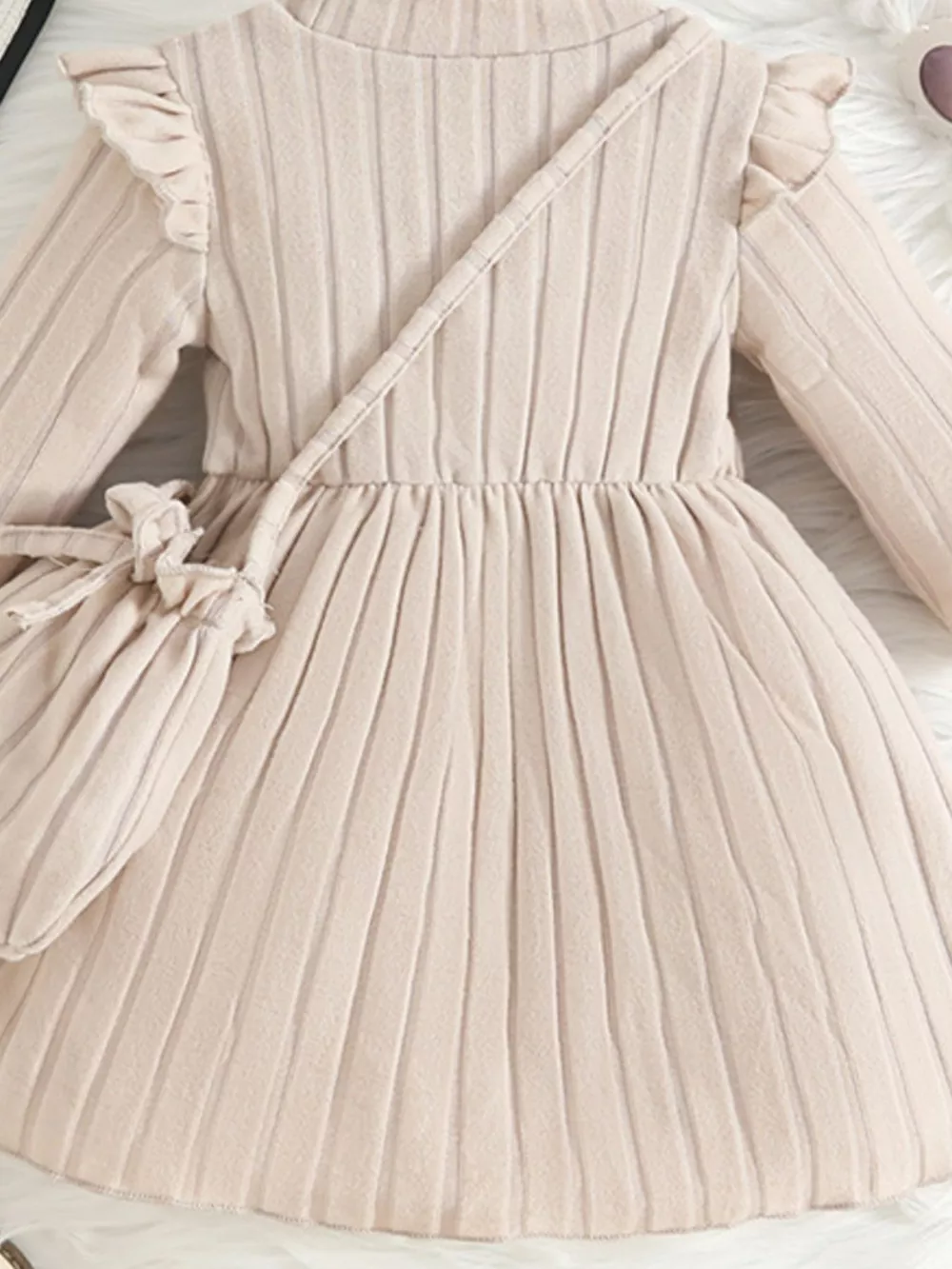 Children's Ribbed Knit Ruffle Trim Dress with Bag