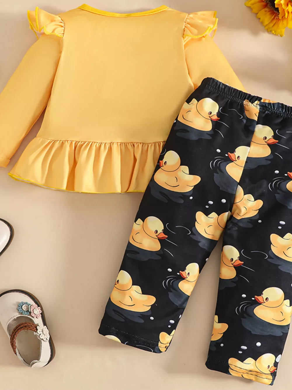 Children's Cute Duck Print Long Sleeve Top and Pants Set