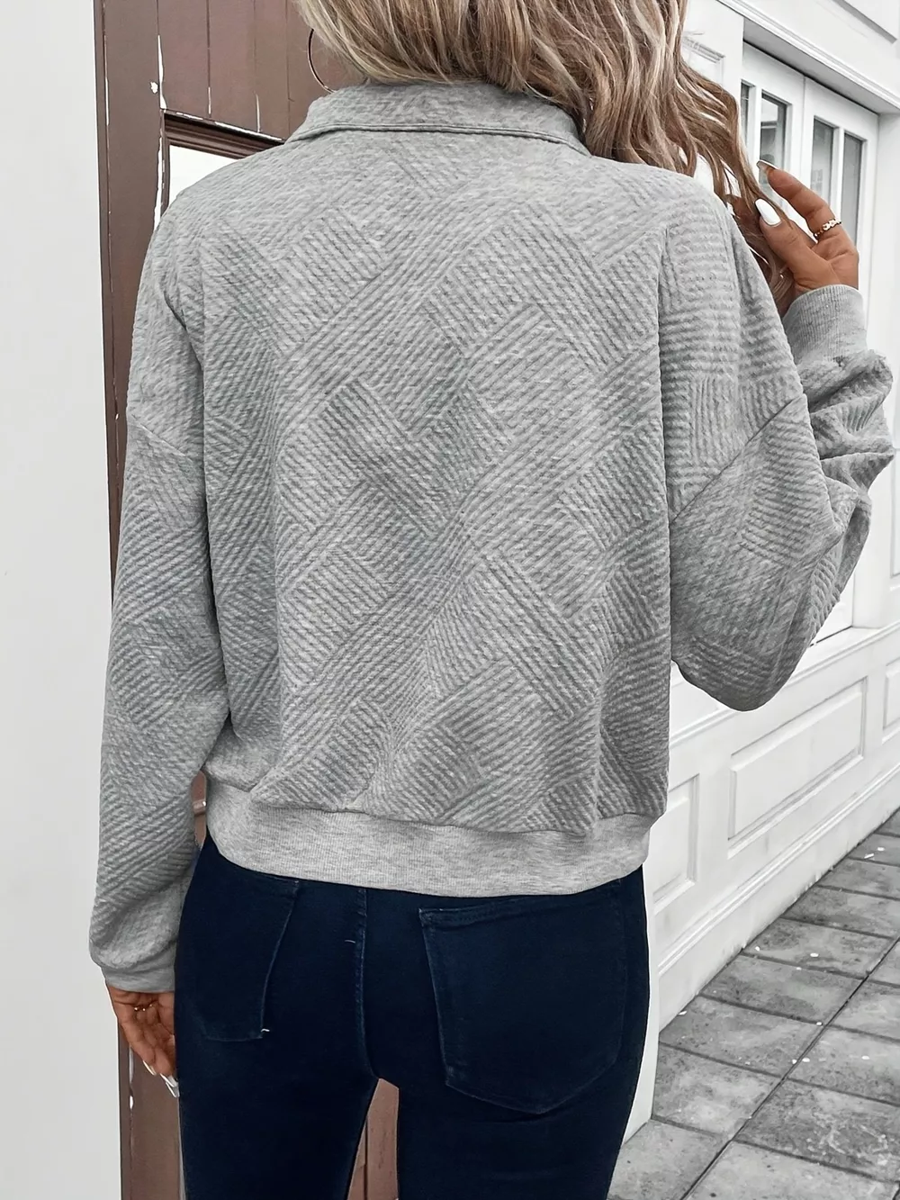 Textured Half Zip Long Sleeve Sweatshirt