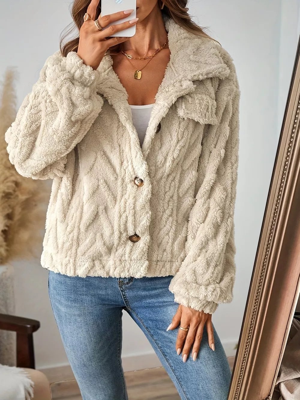 Cozy Textured Fleece Button-Up Outerwear