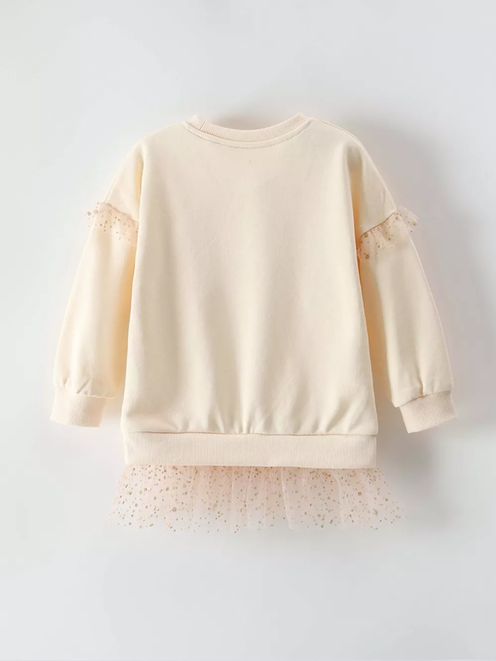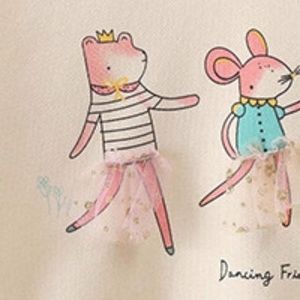 Children's Cartoon Animal Mesh Trim Sweatshirt