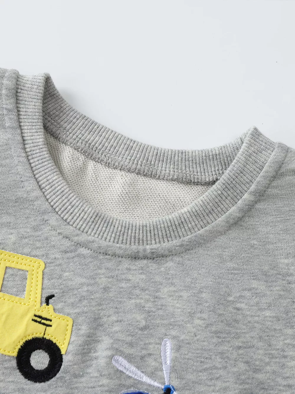 Children's Cartoon Vehicle Graphic Crew Neck Sweatshirt