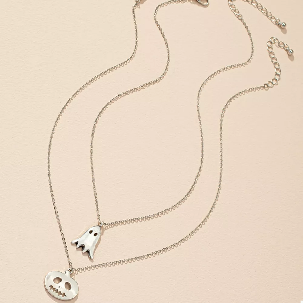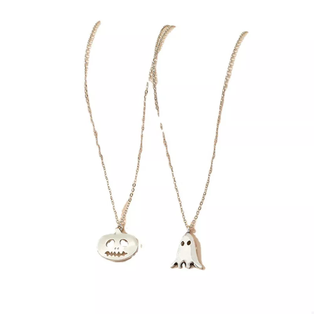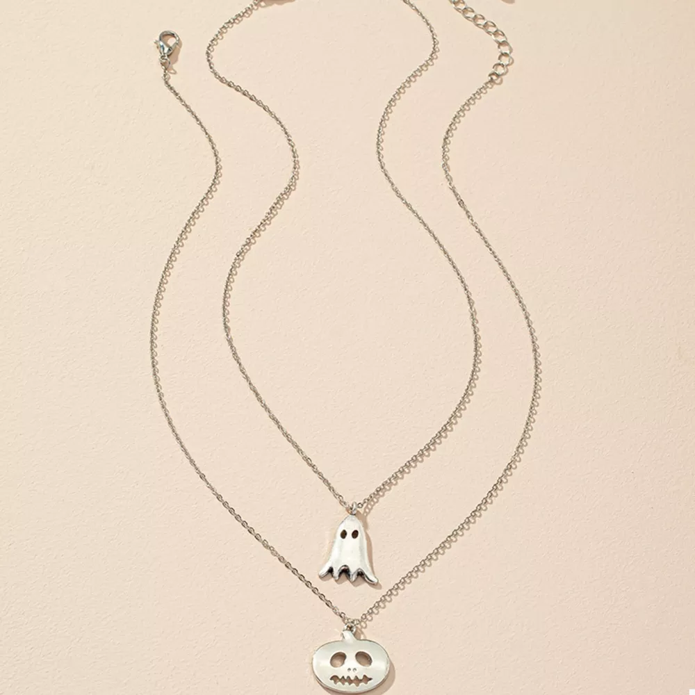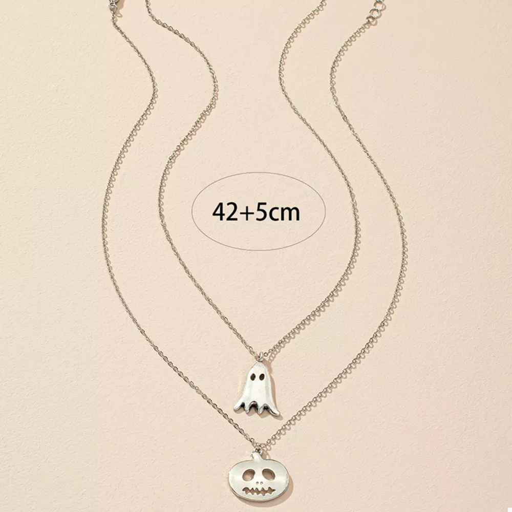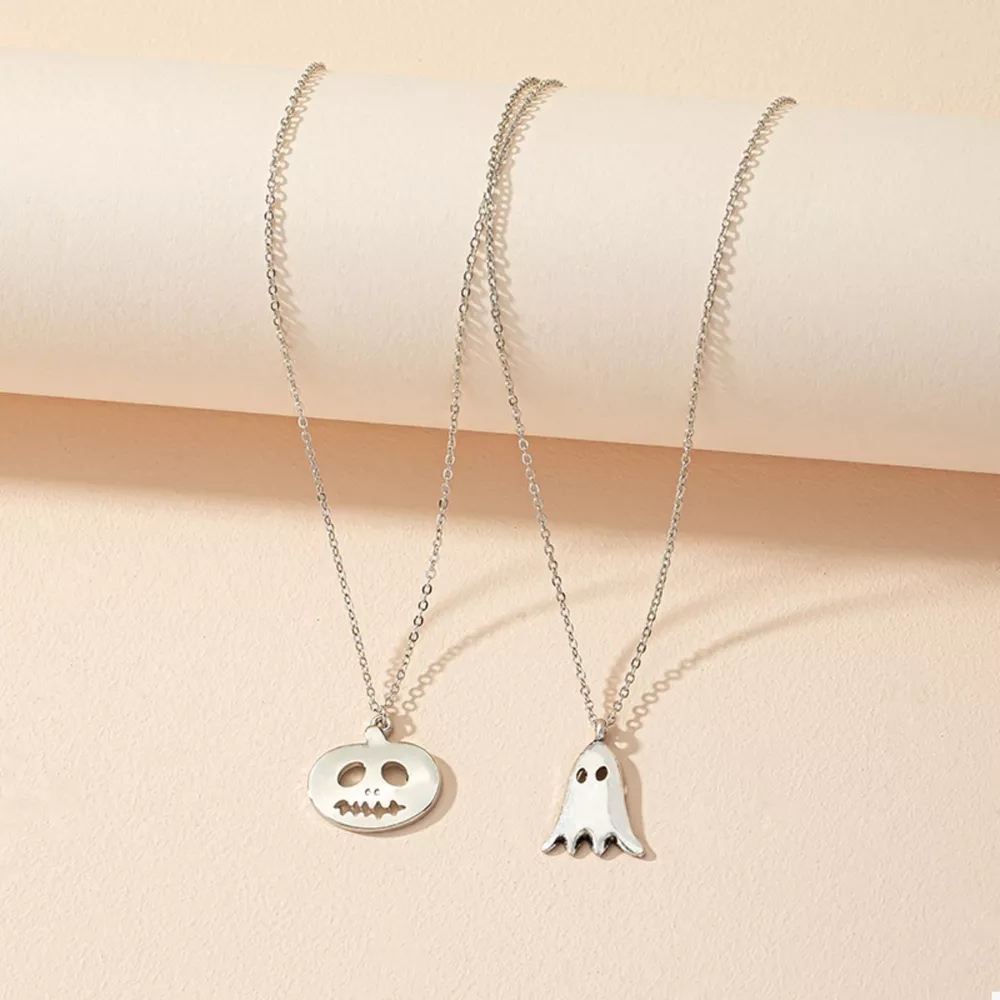 2 Piece Halloween Ghost & Pumpkin Pendant Necklace