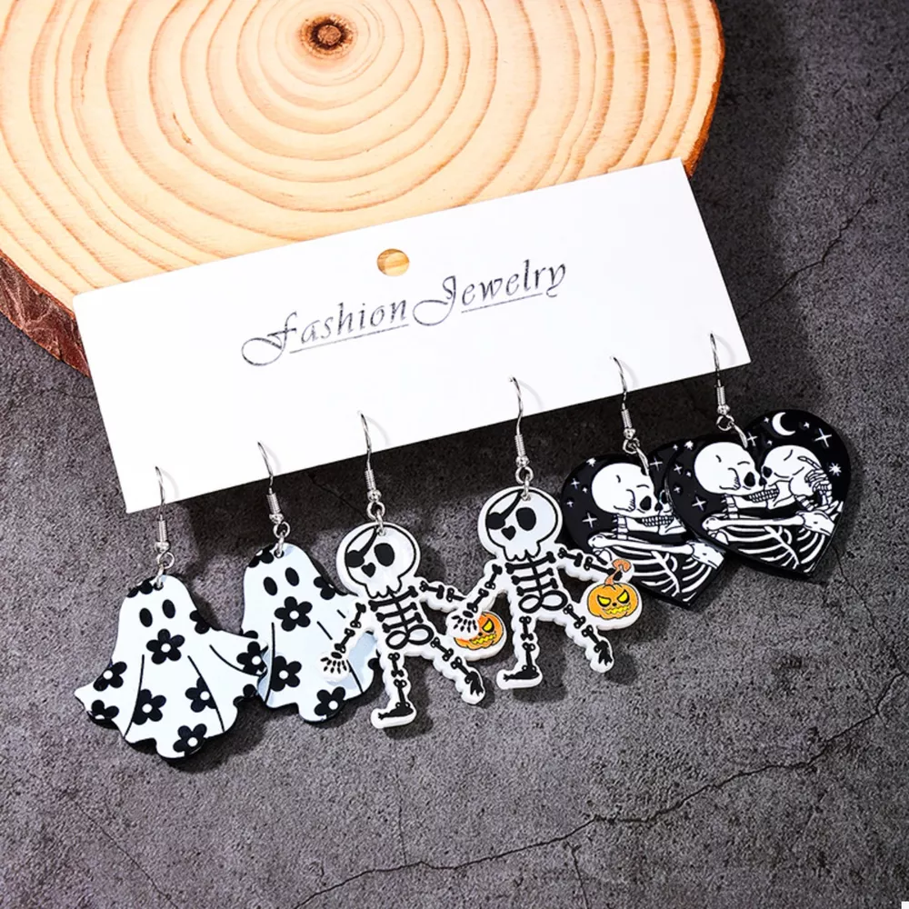 3 Pair Halloween Themed Acrylic Dangle Earrings