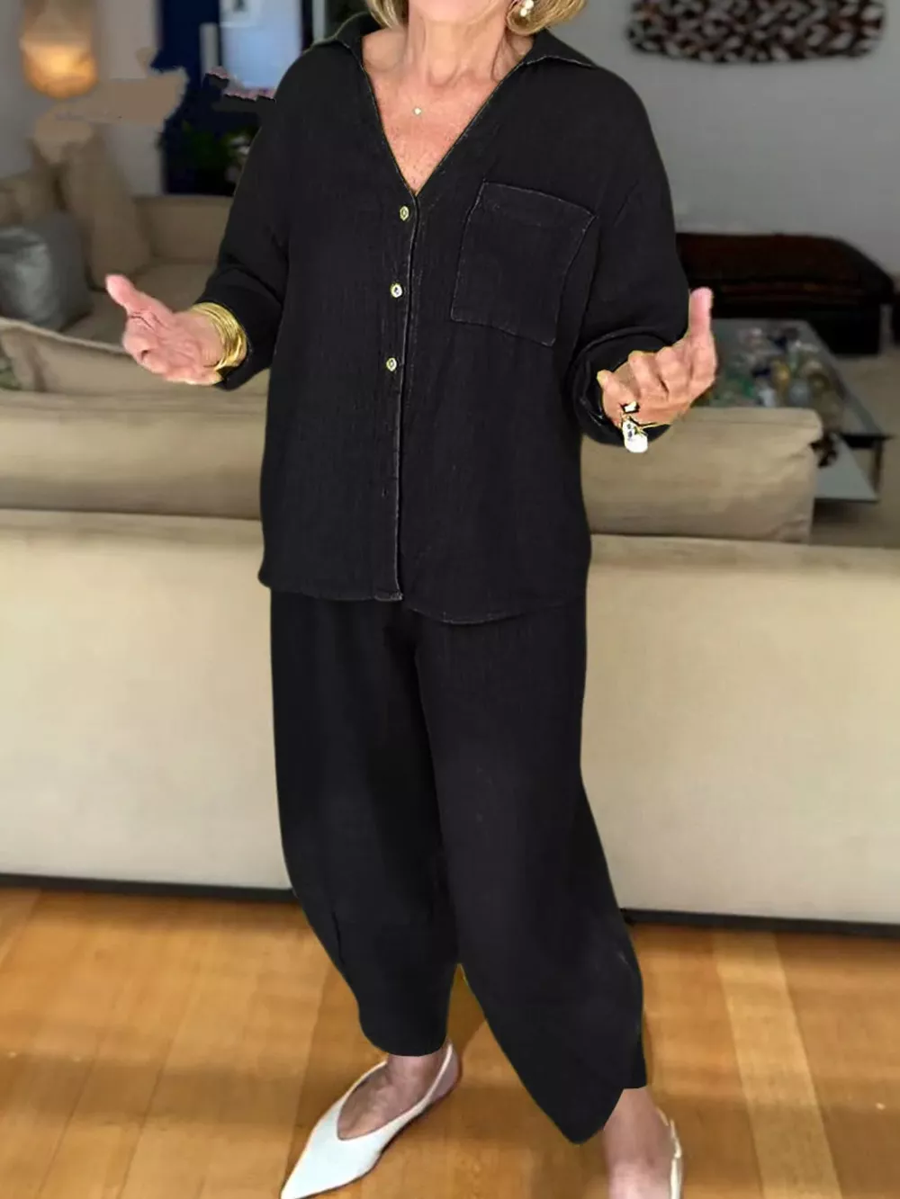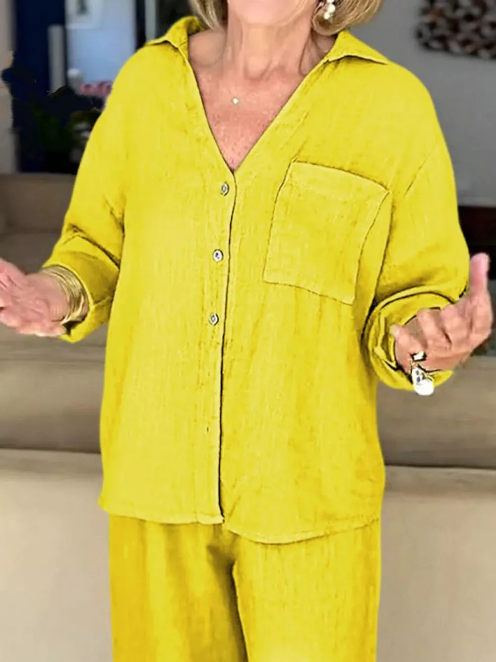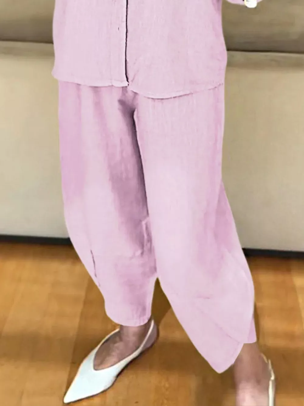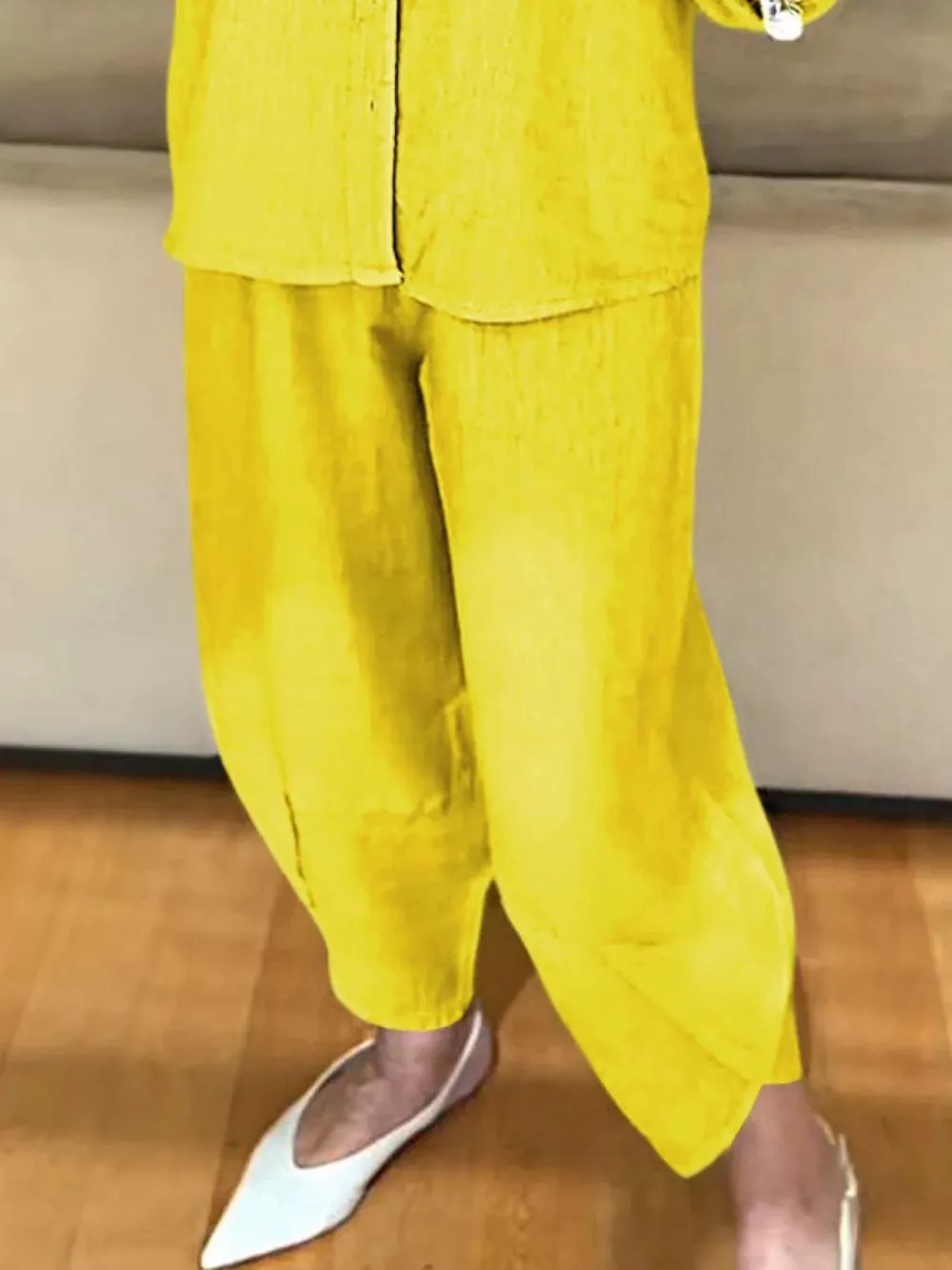Full Size Button Down Shirt and Pants Set Plus Size