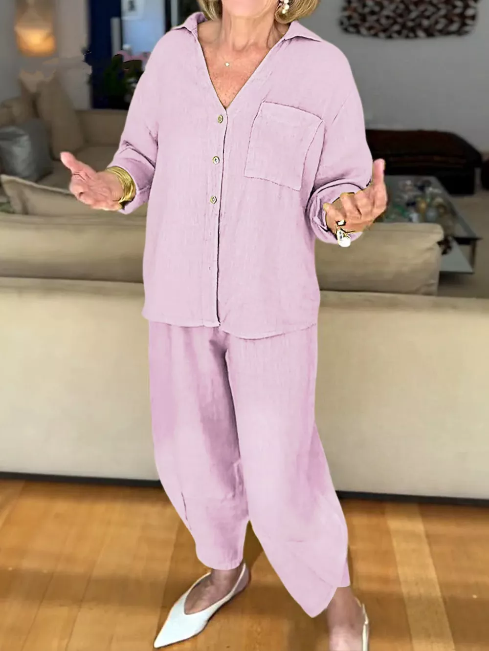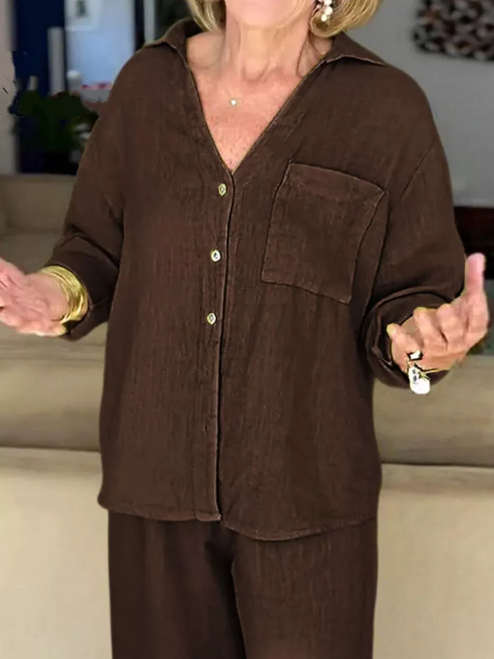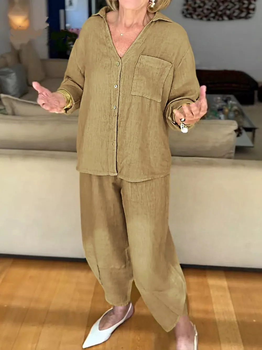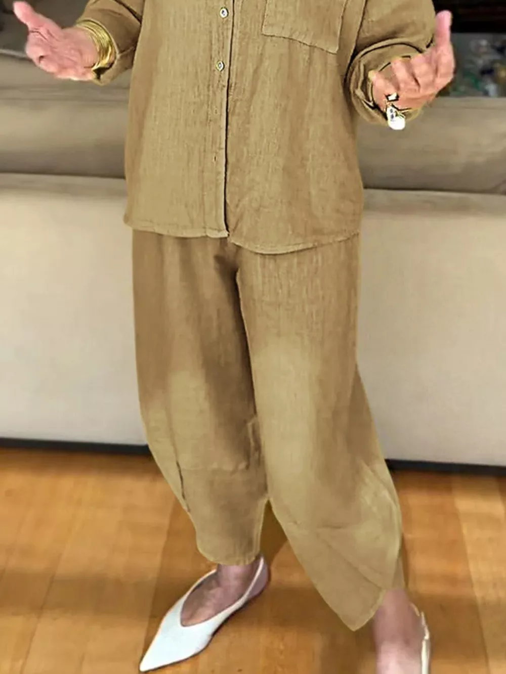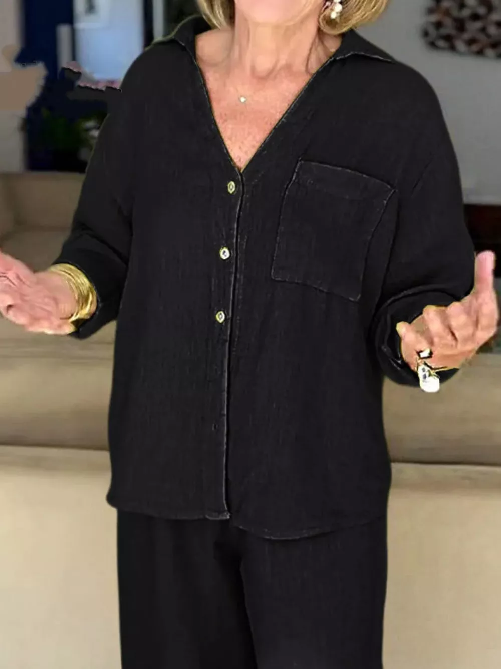 Full Size Button Down Shirt and Pants Set Plus Size