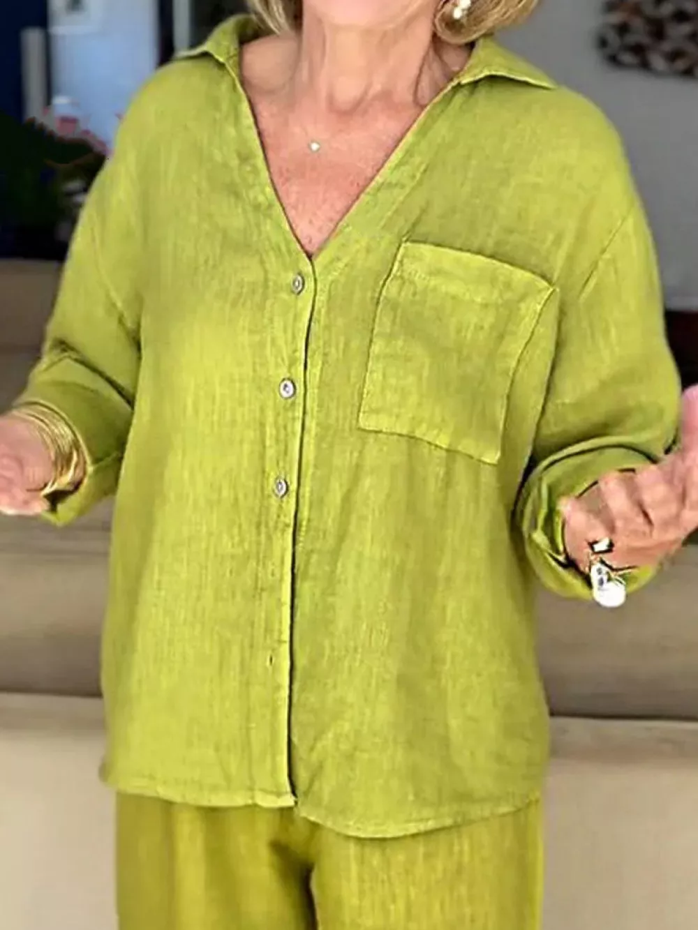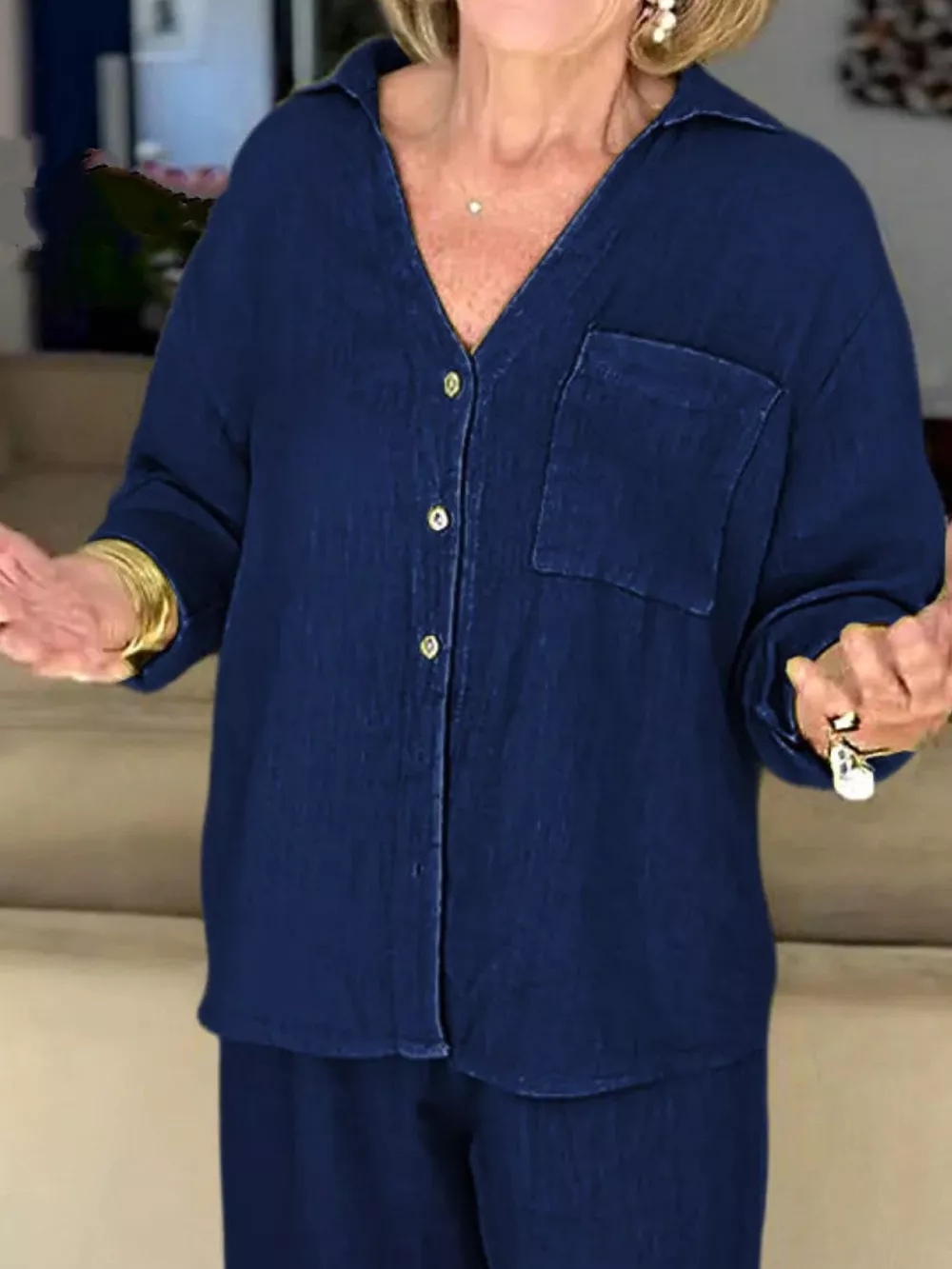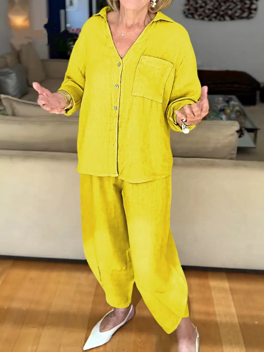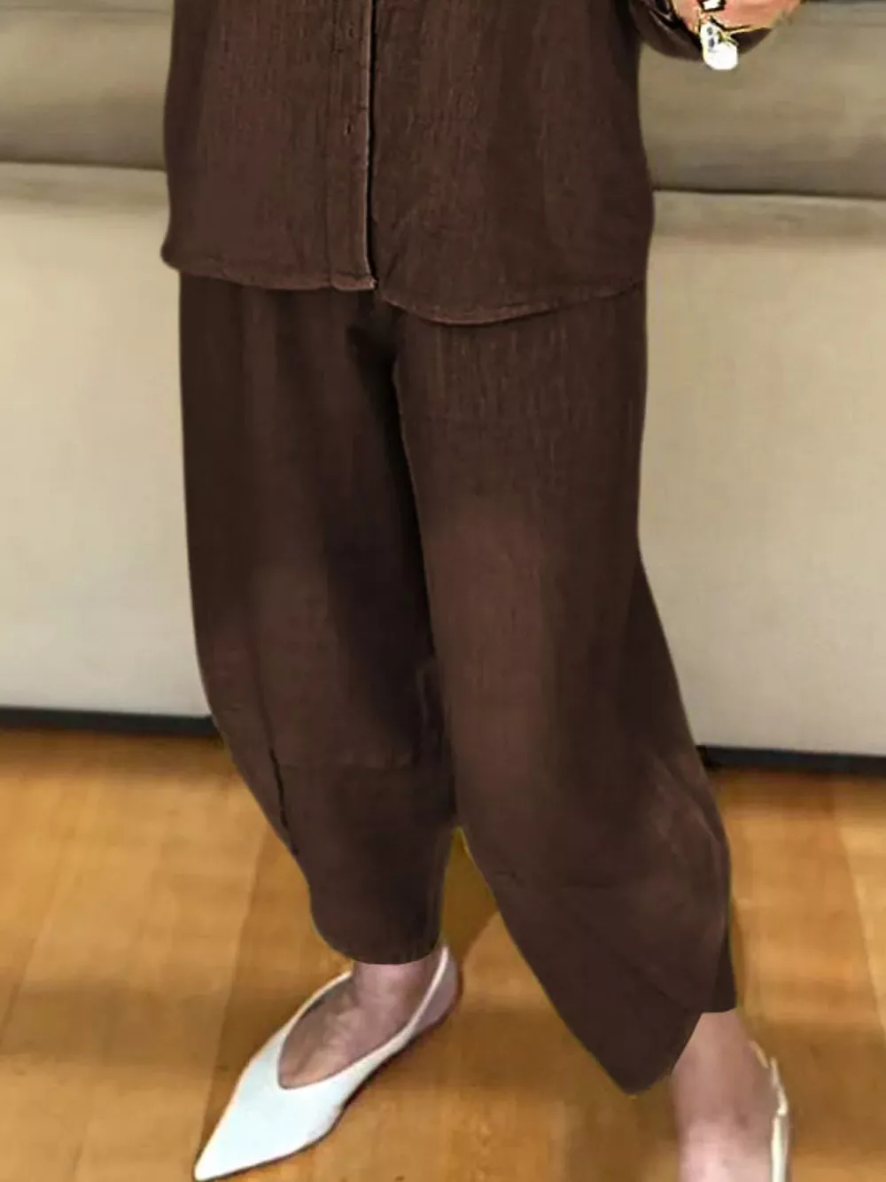 Full Size Button Down Shirt and Pants Set Plus Size