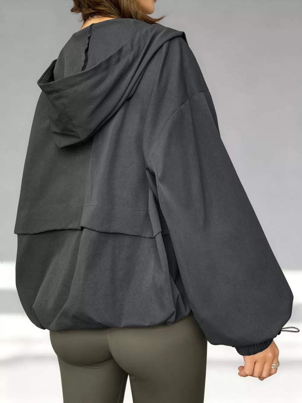 Drawstring Zip Up Hooded Jacket
