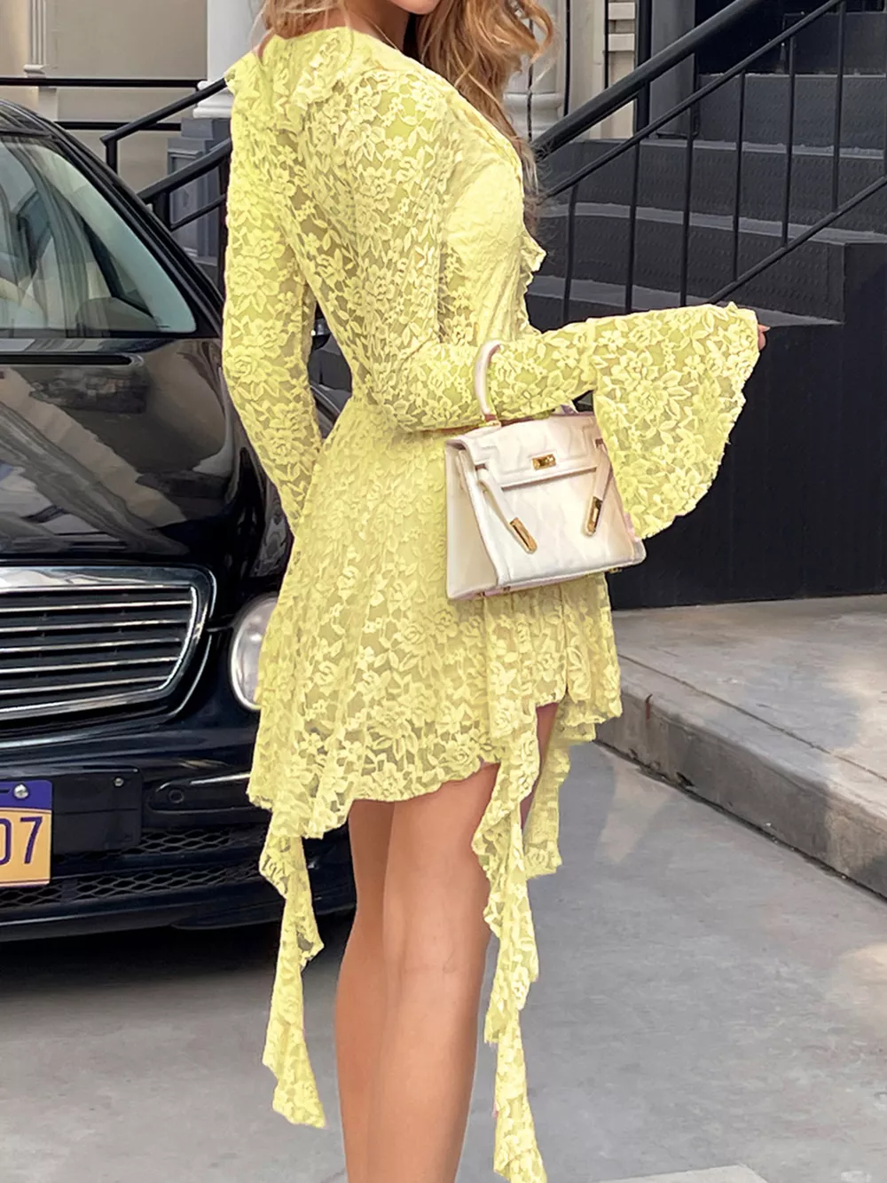 - Features:Lace,Tied,Ruffled,Slit