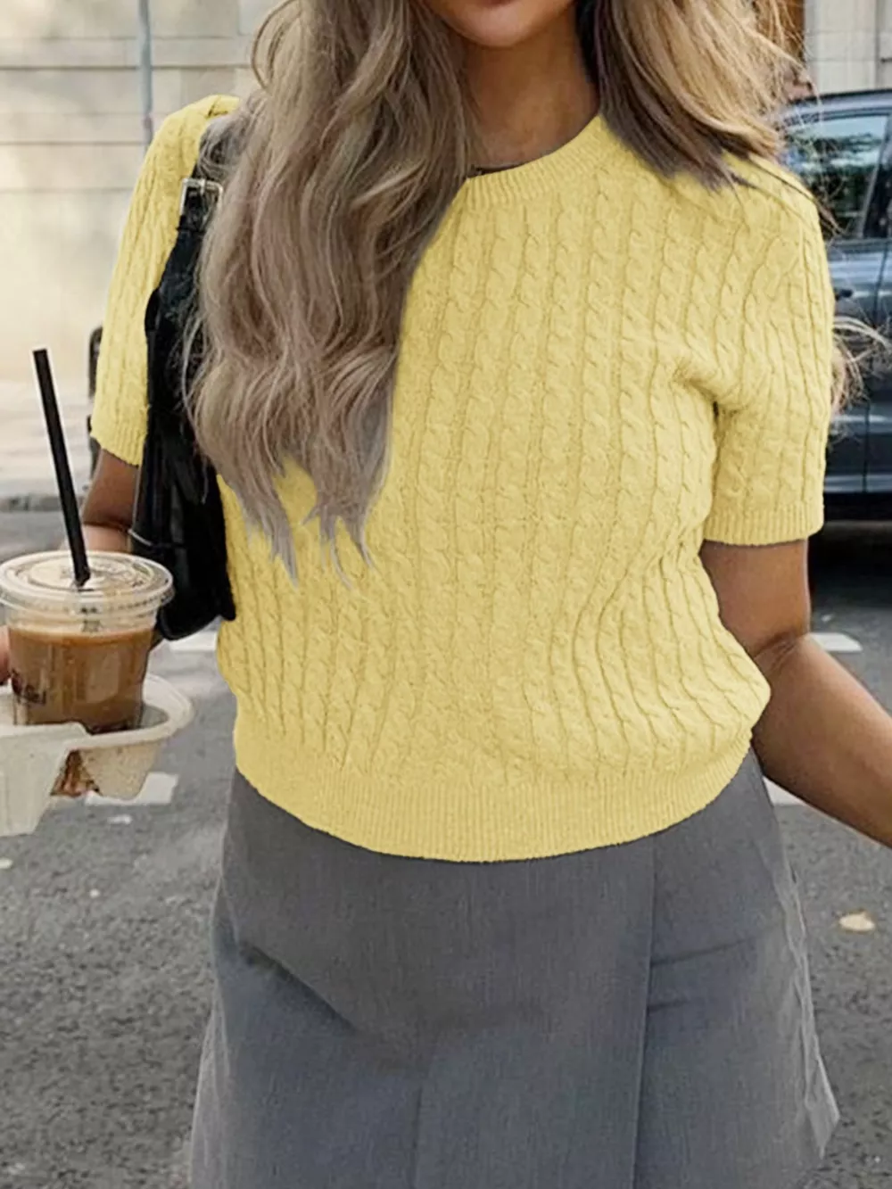 Cable-Knit Short Sleeve Sweater