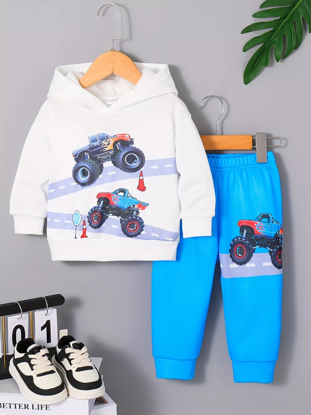 Children's Cartoon Truck Graphic Hoodie & Pants Set