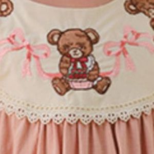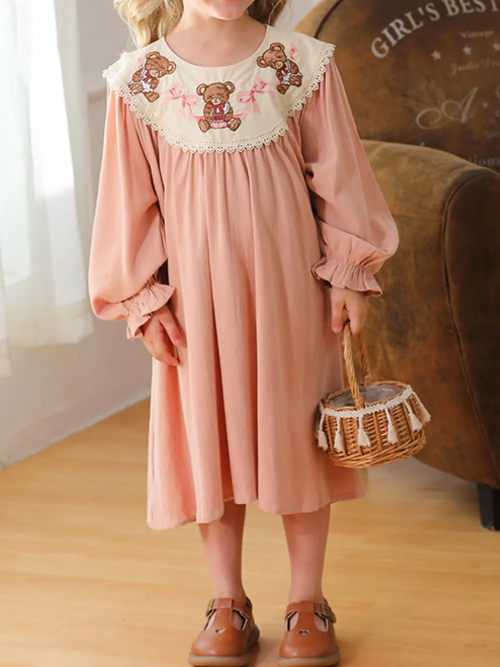 Children's Teddy Bear Embroidered Collar Long Sleeve Dress