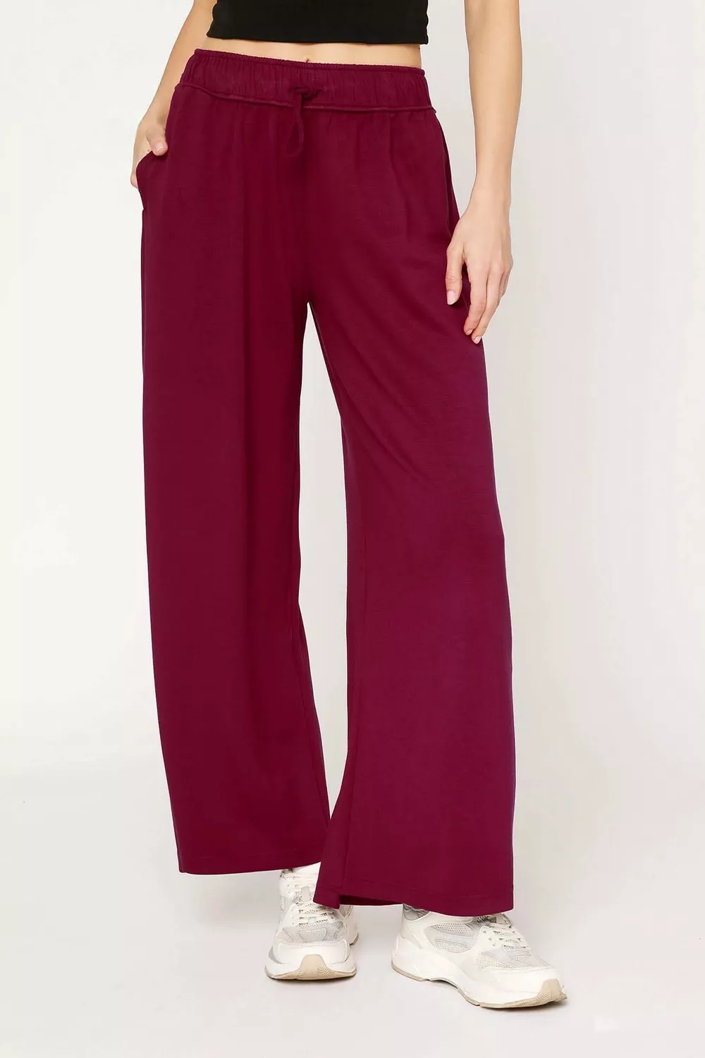 Umgee Elastic Drawstring Waistband Wide Leg Pants