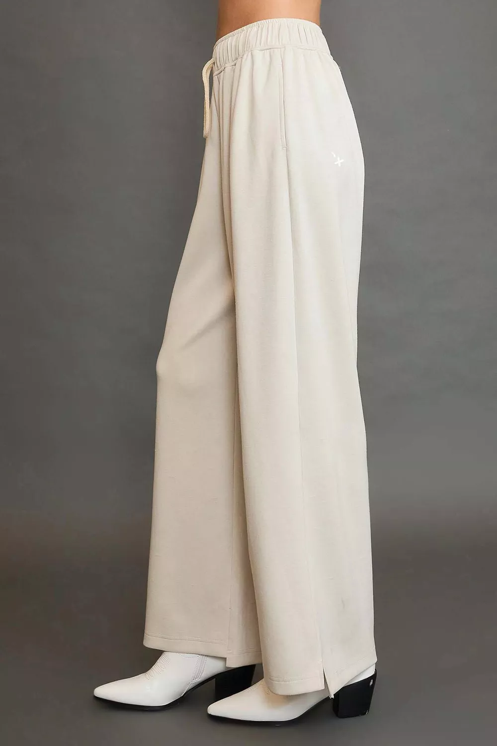 Umgee Elastic Drawstring Waistband Wide Leg Pants