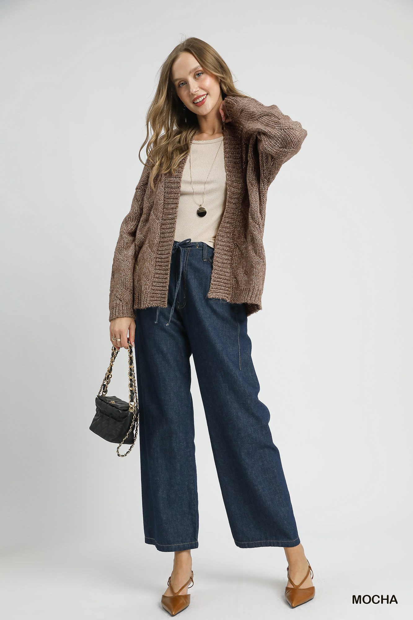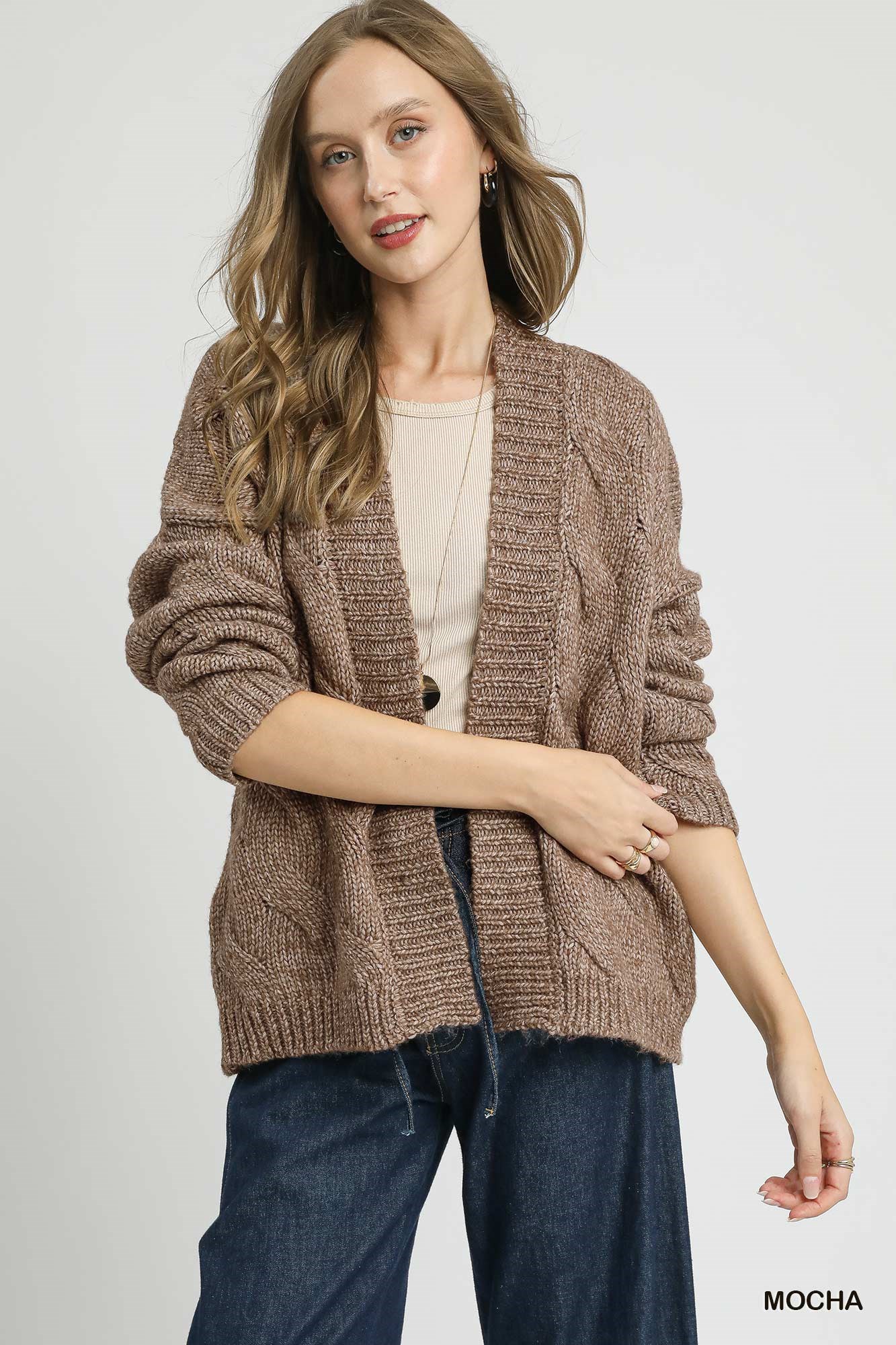 This chunky cable knit open front cardigan features a cozy and stylish design. The open front style allows for easy layering and a relaxed fit. With a chunky cable knit design, this cardigan adds texture and warmth to any outfit. The long length and ribbed cuffs provide a comfortable and flattering silhouette. Please note that this cardigan is not lined, perfect for a lightweight and versatile layering piece.