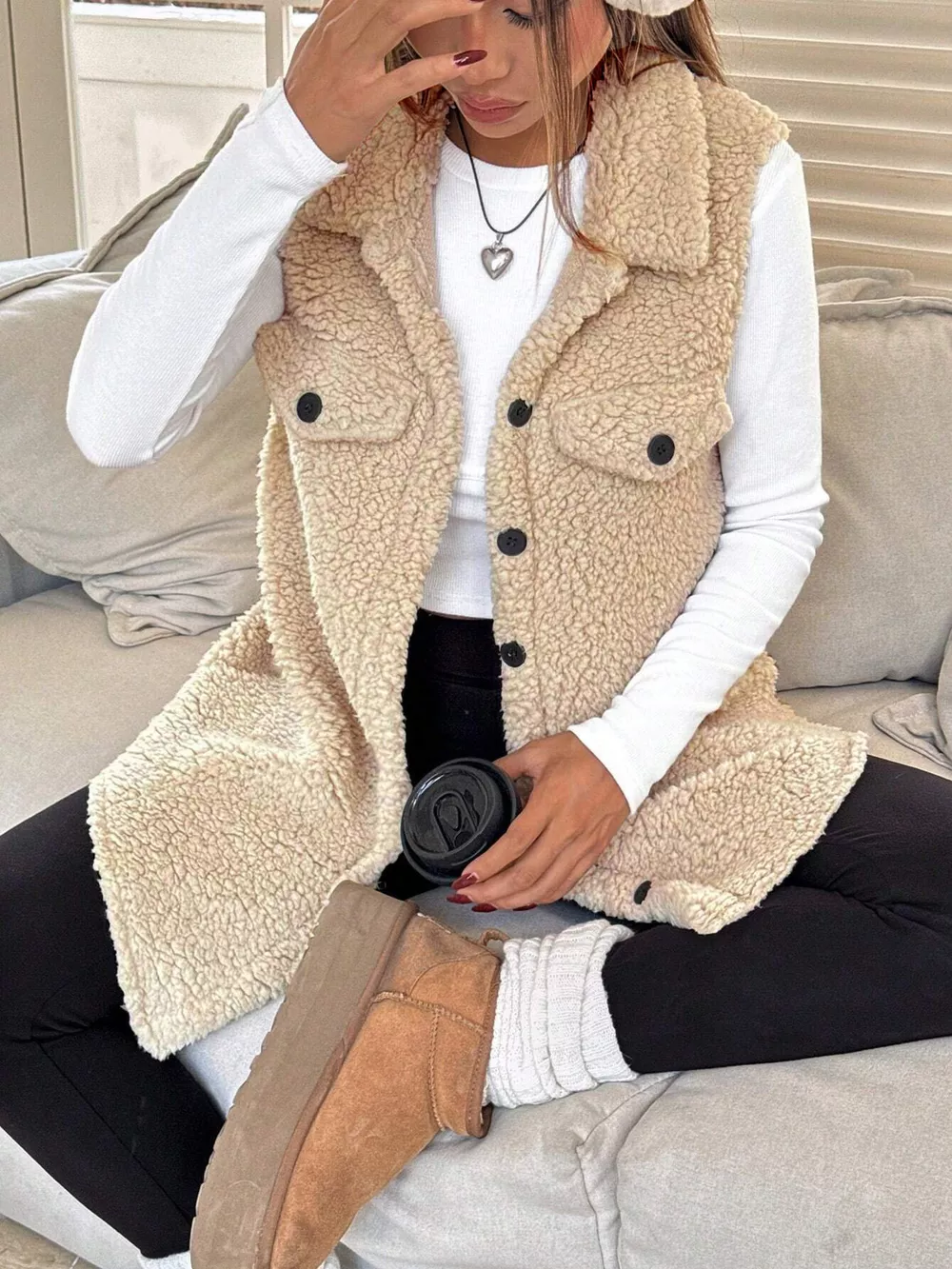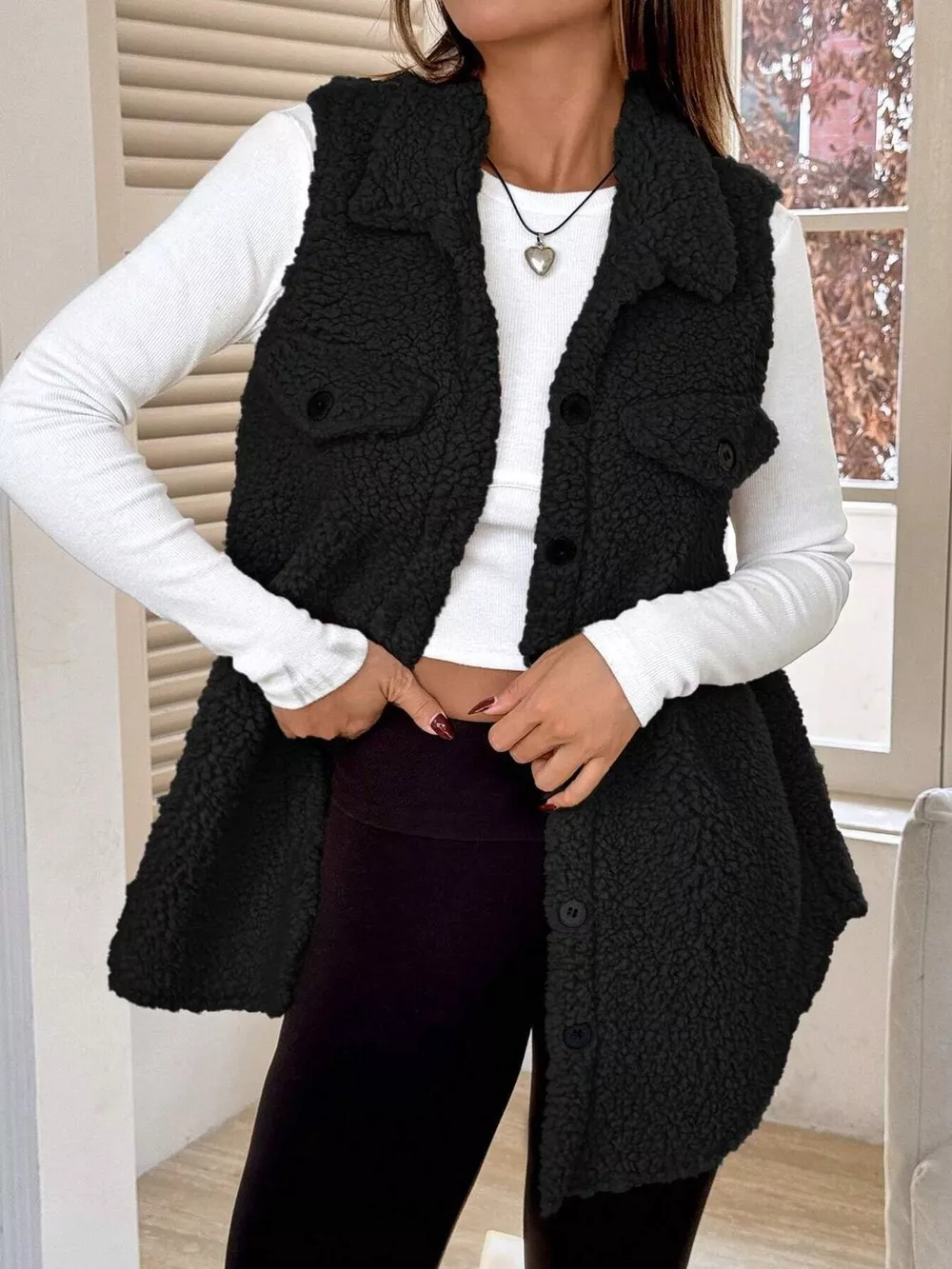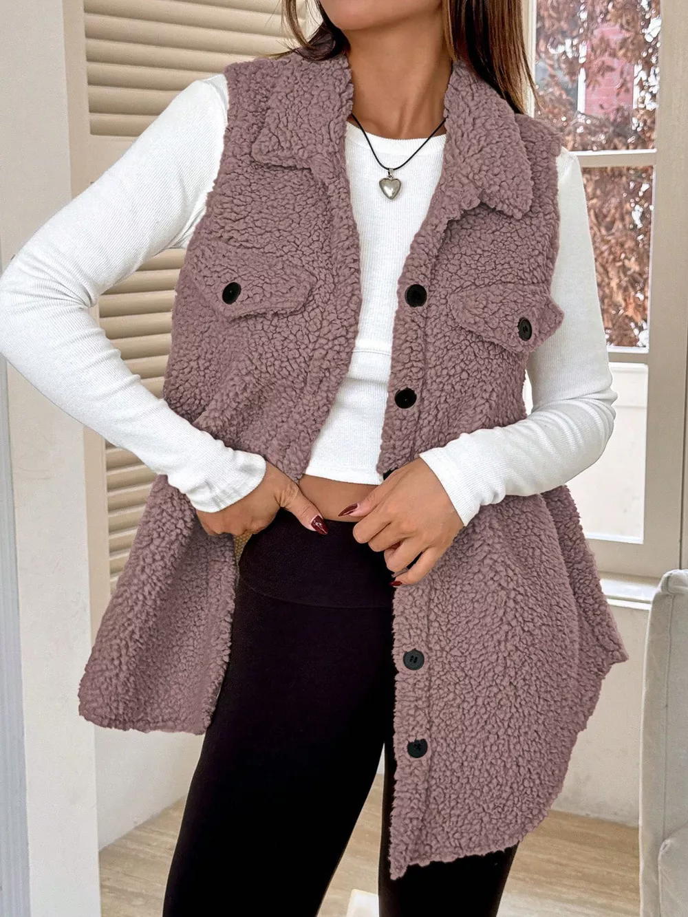 Button-Down Sherpa Fleece Vest Coat