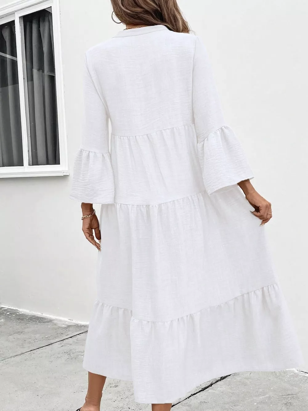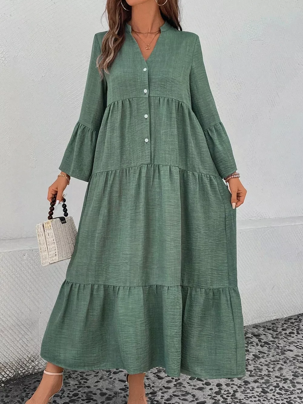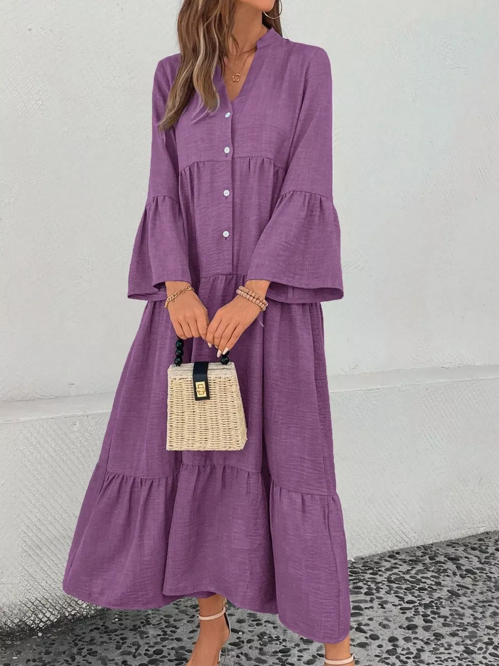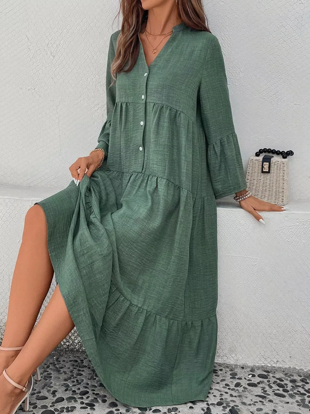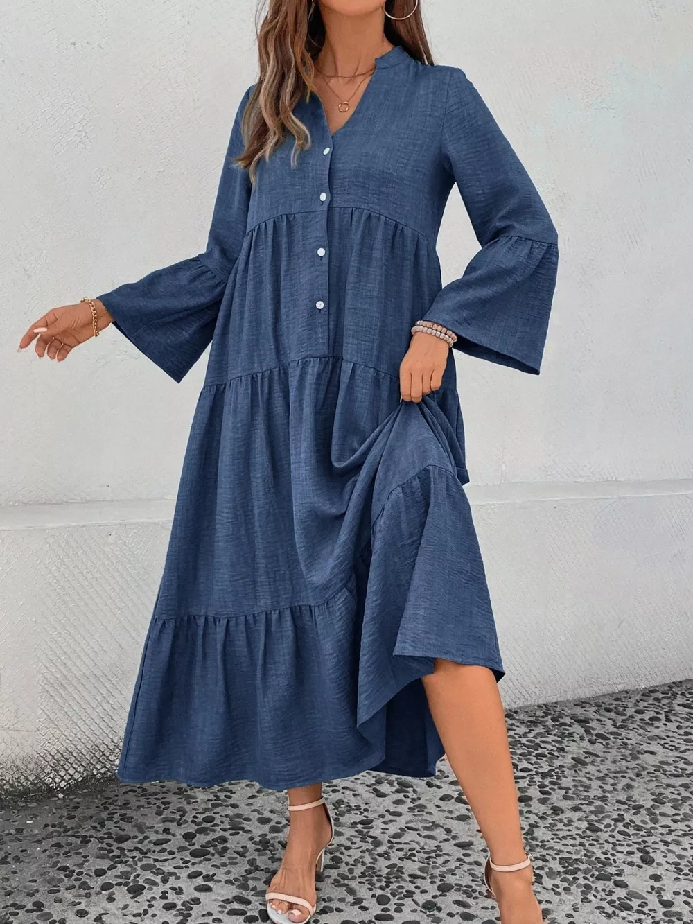 Ruffle Hem Button Front Tiered Dress