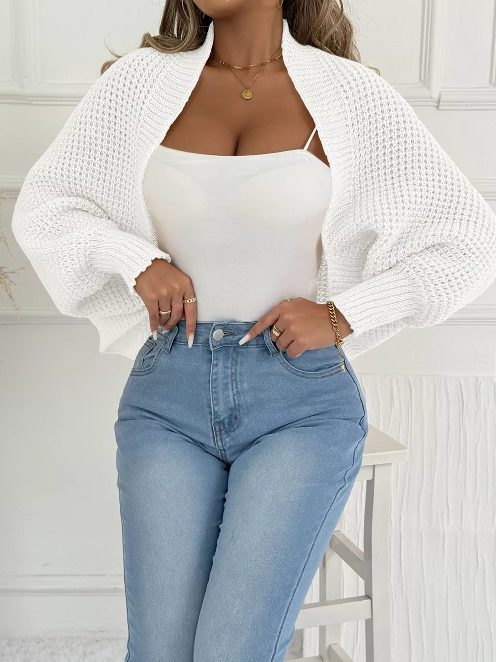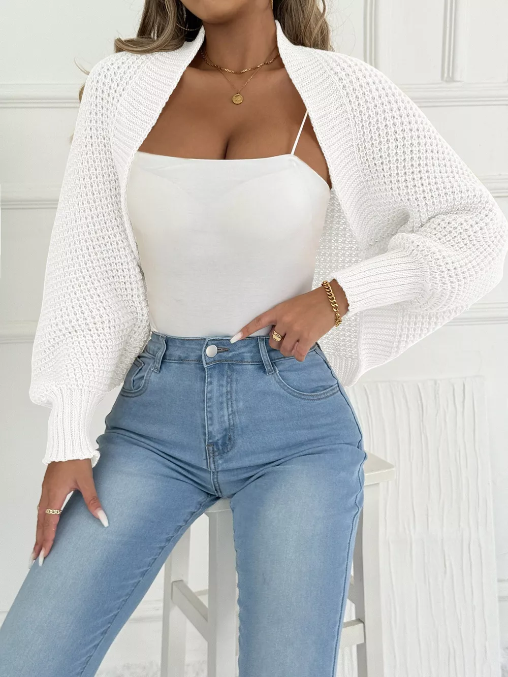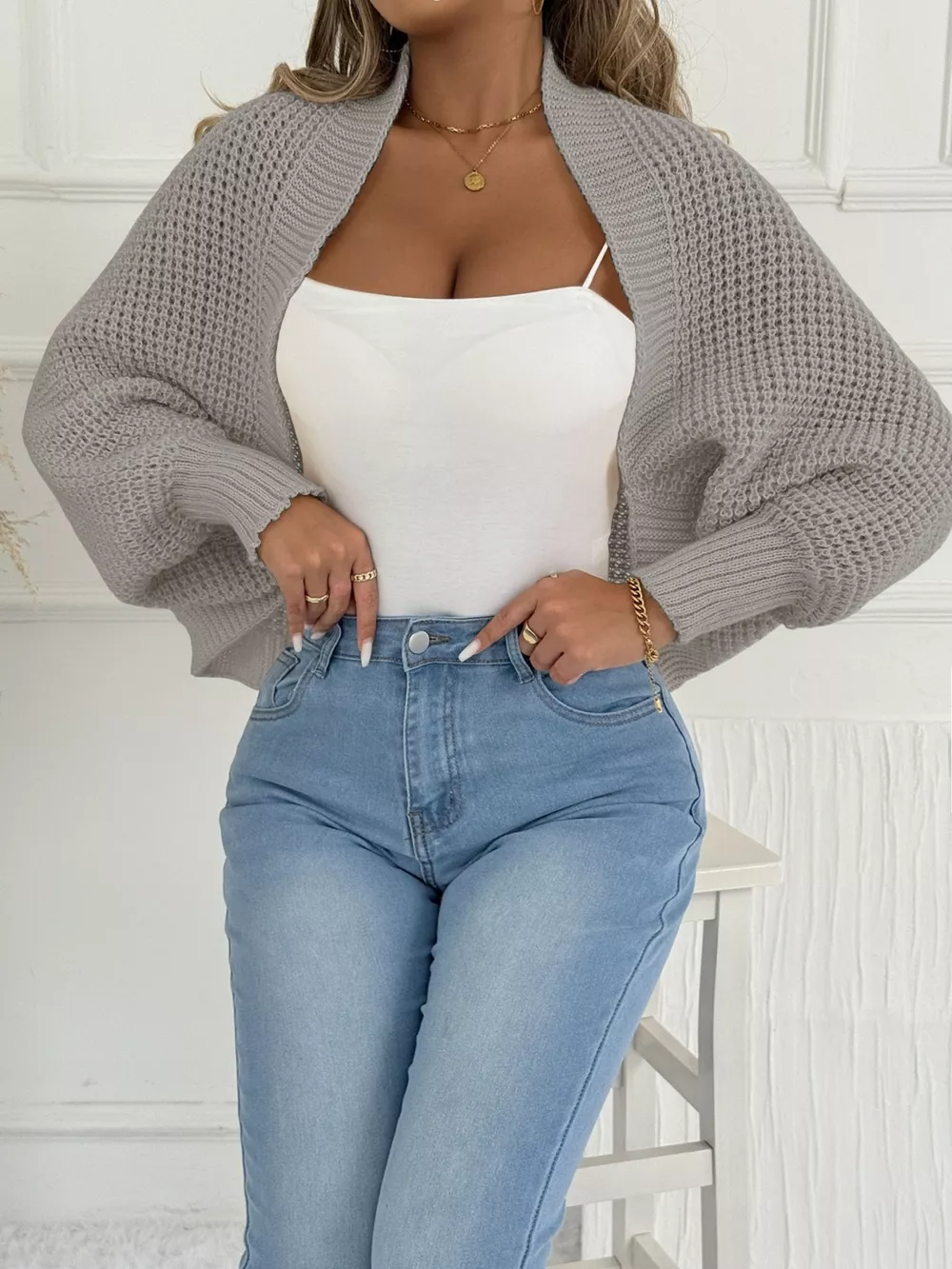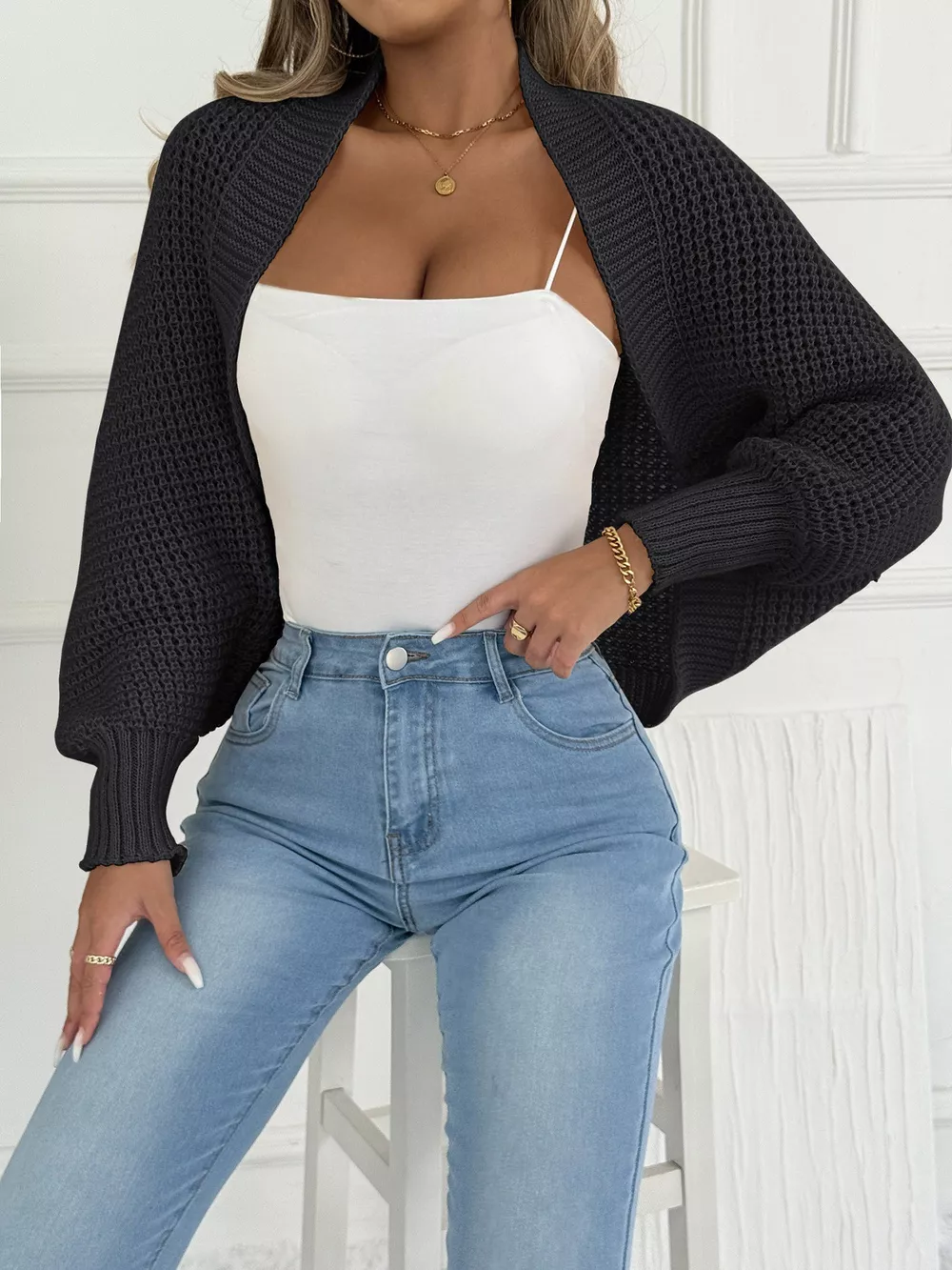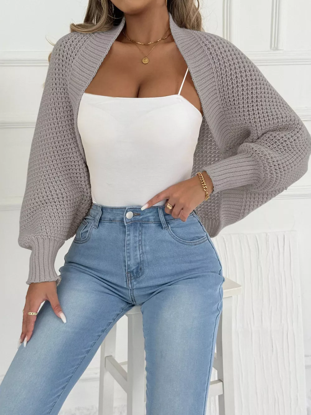 Open Front Batwing Sleeve Cardigan