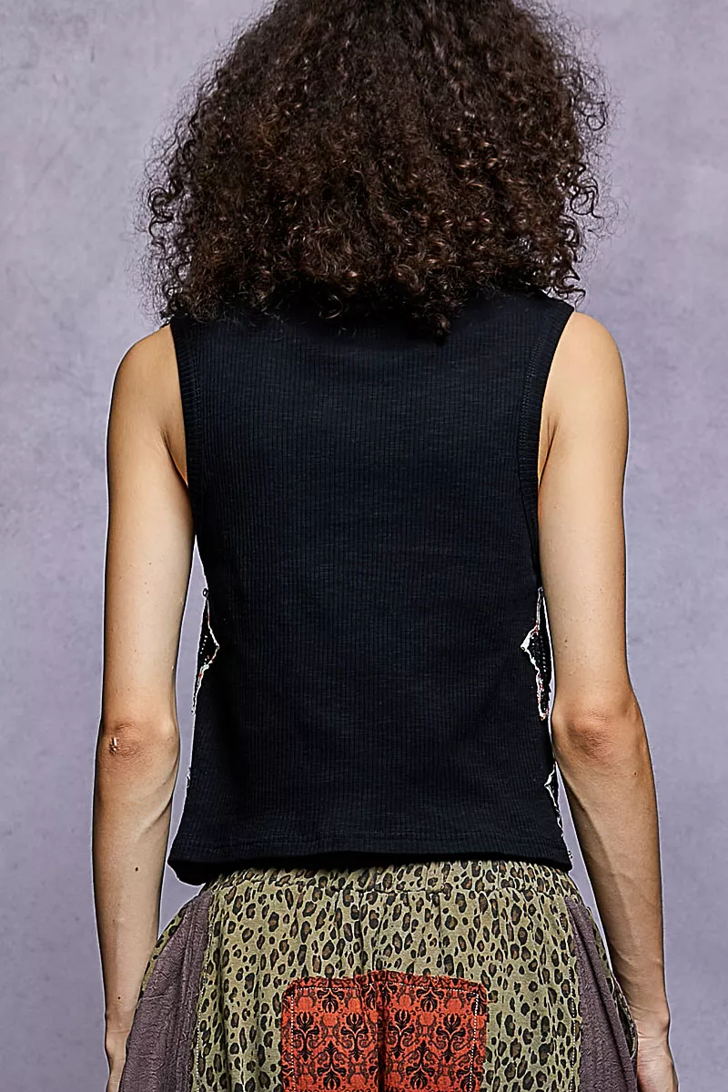 POL Star Patch V-Neck Cropped Ribbed Tank